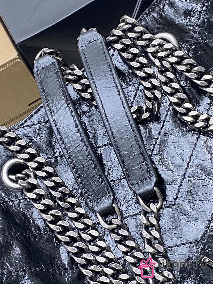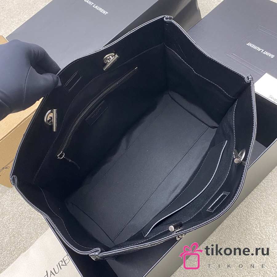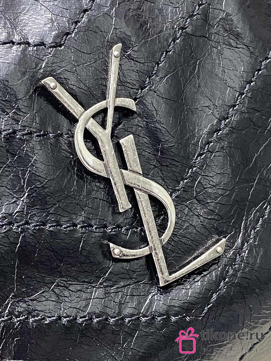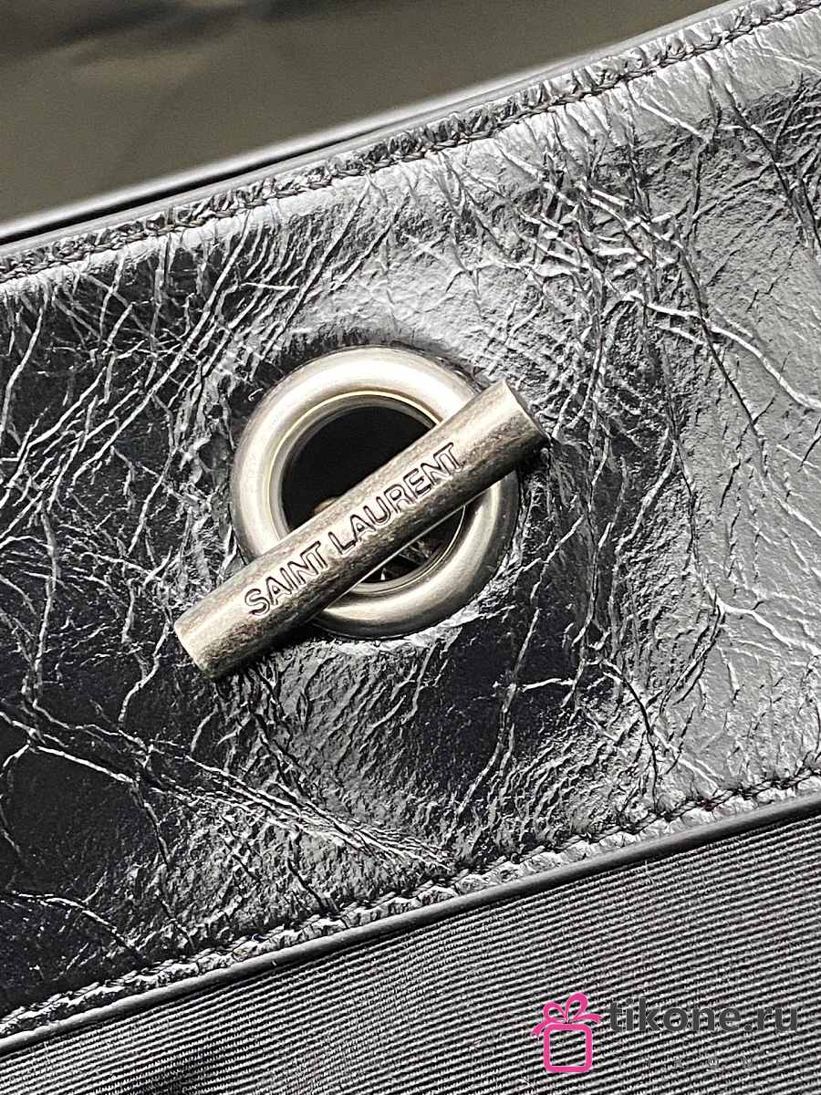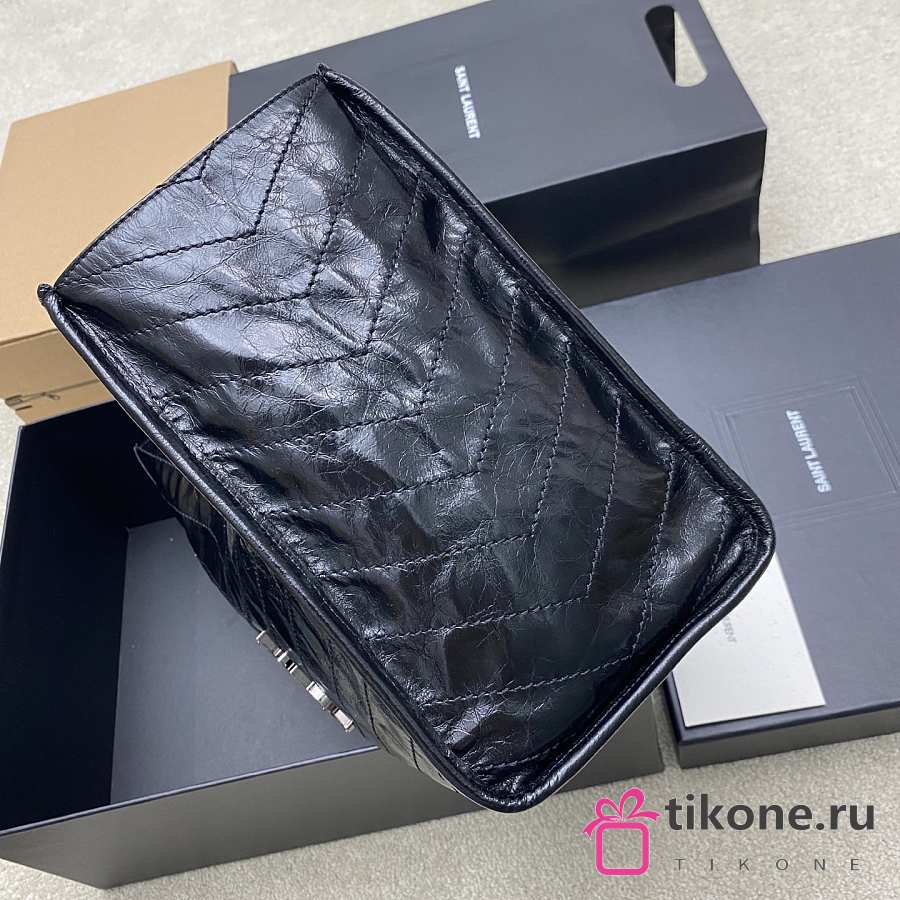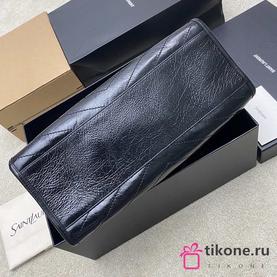 YSL Niki Medium Shopping In Vintage Leather Black Silver Tone - 33x27x14cm