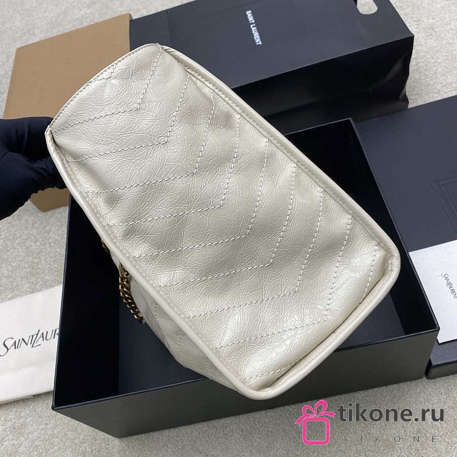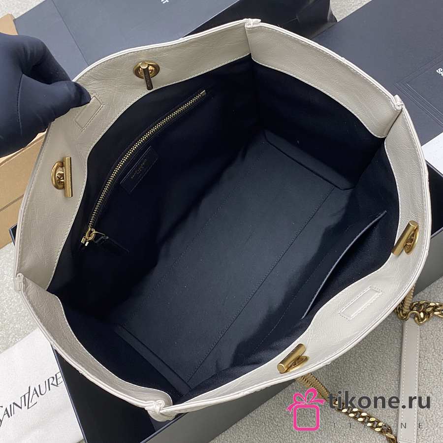 YSL Niki Medium Shopping In Vintage Leather White Gold Tone - 33x27x14cm