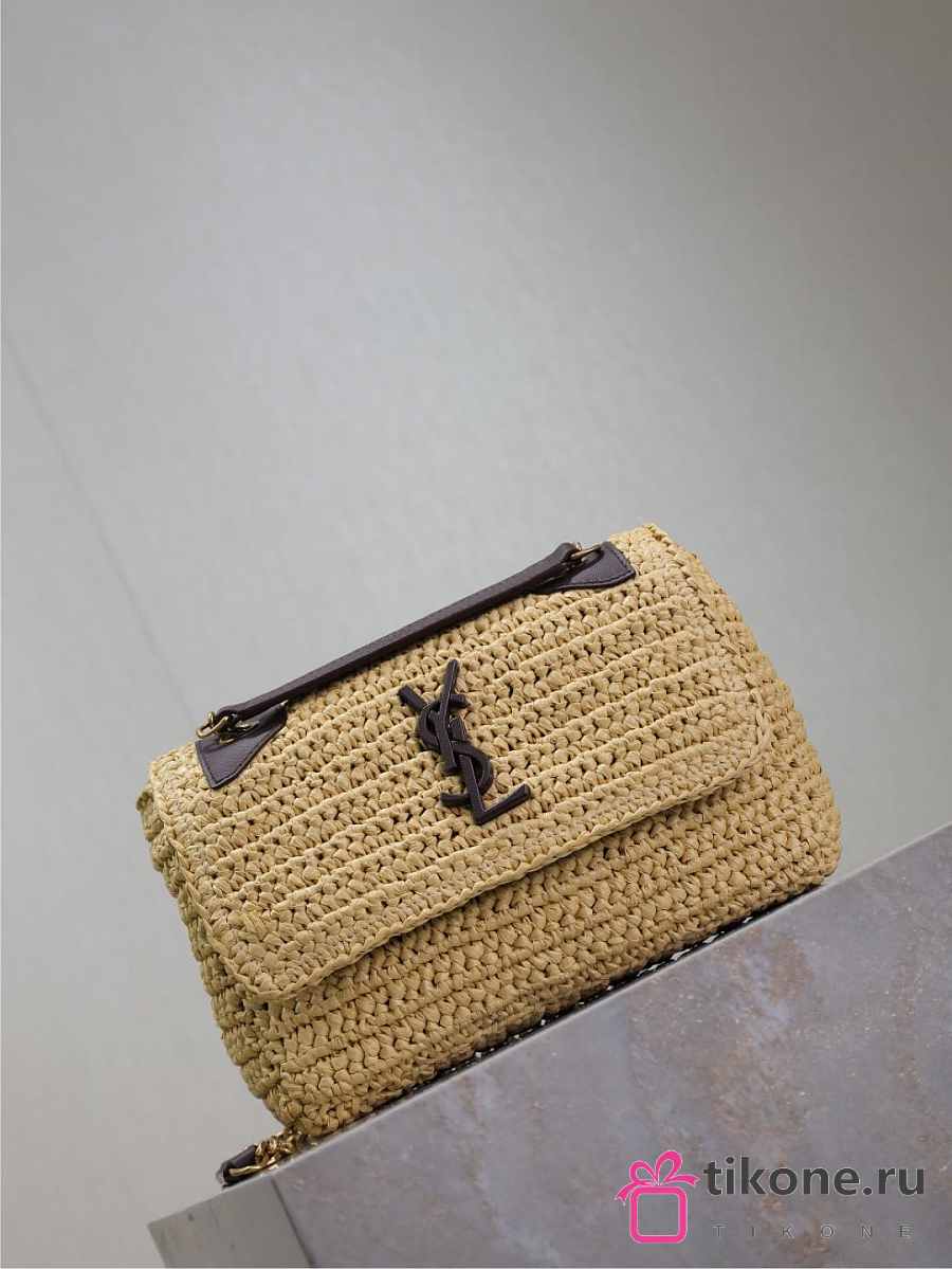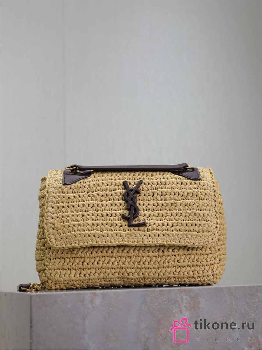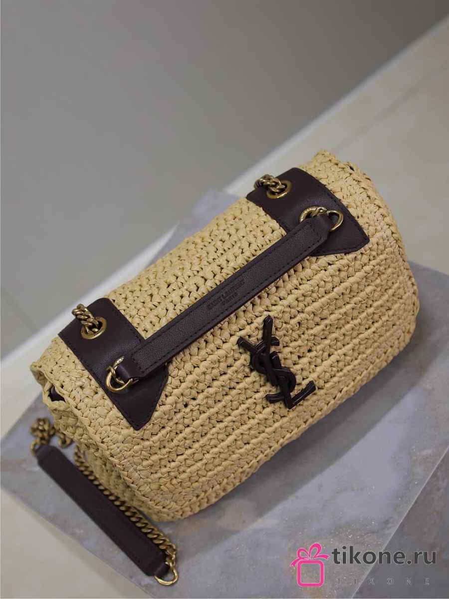 YSL Niki Mini In Raffia Natural And Brown - 18x12.5x5cm