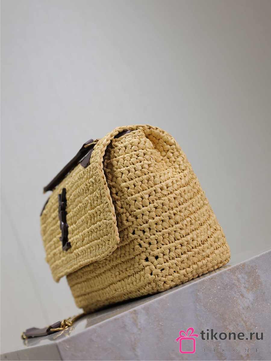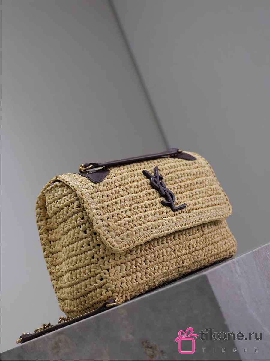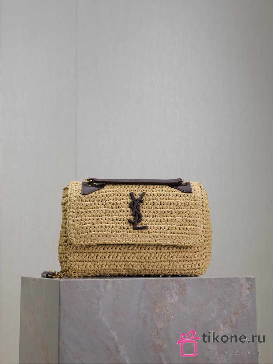 YSL Niki Mini In Raffia Natural And Brown - 18x12.5x5cm
