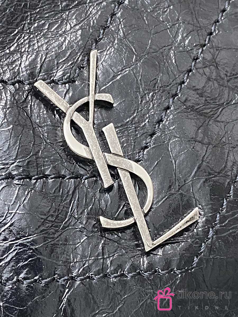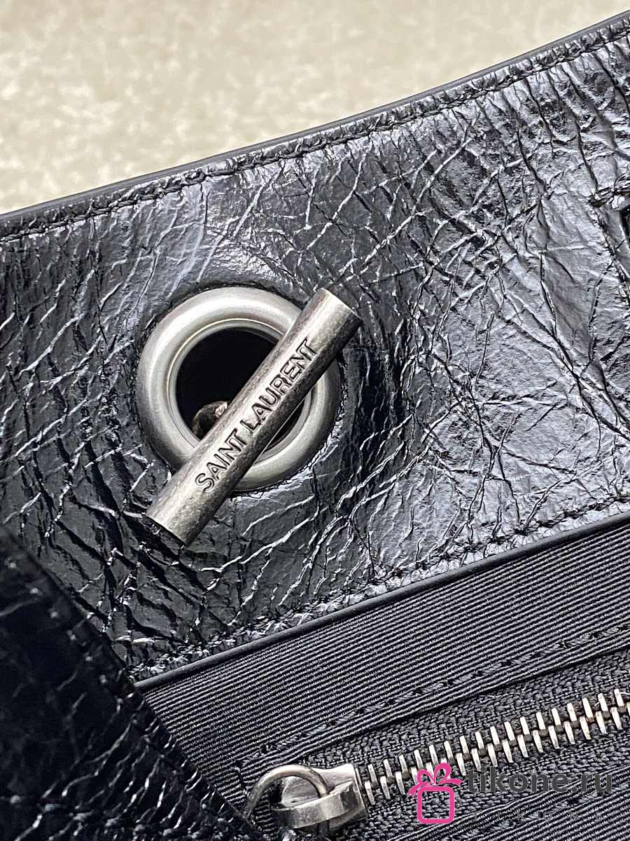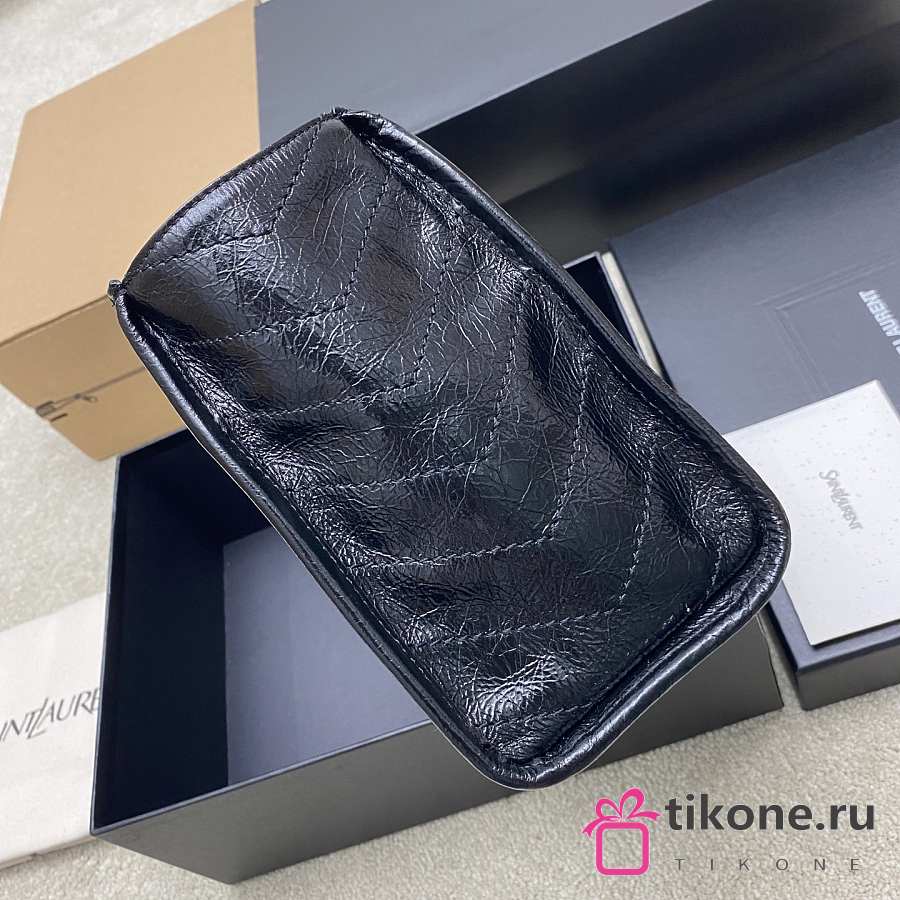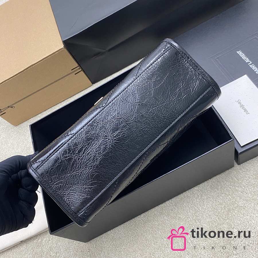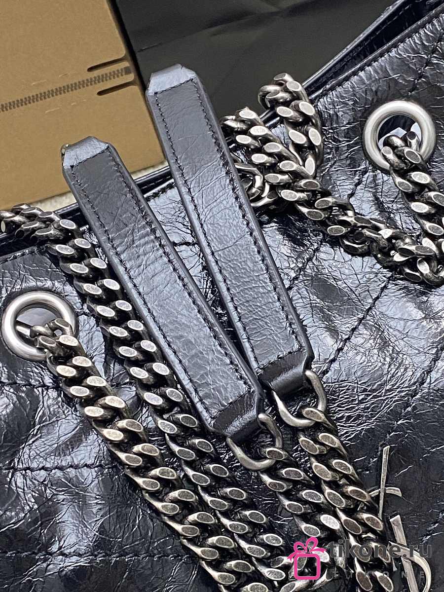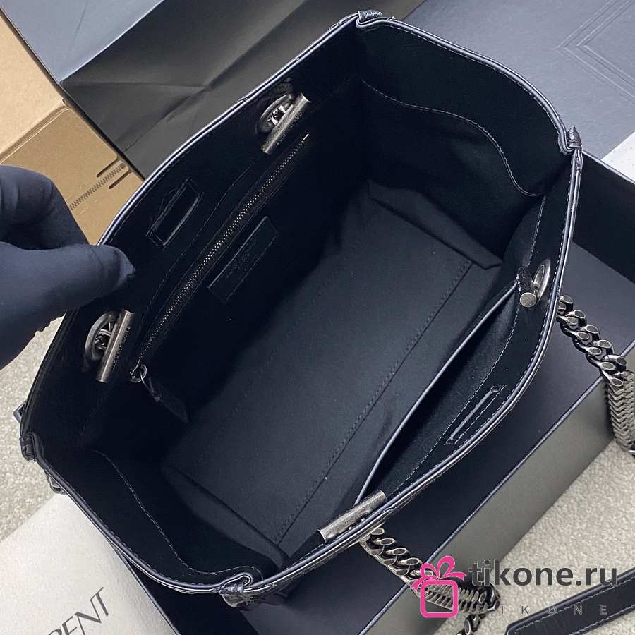YSL Niki Small Shopping In Vintage Leather Black Silver Tone - 25x19x10cm