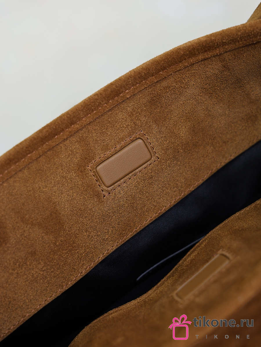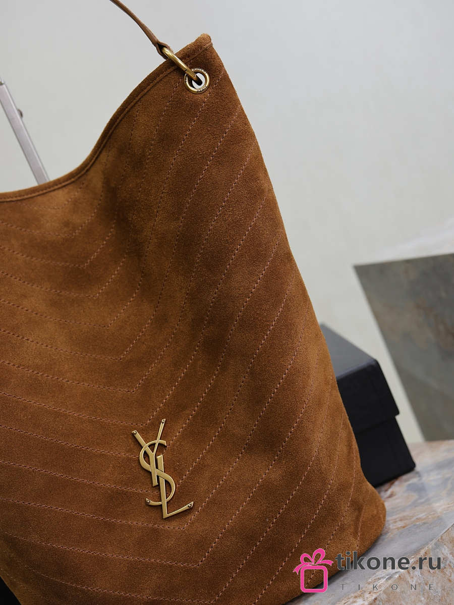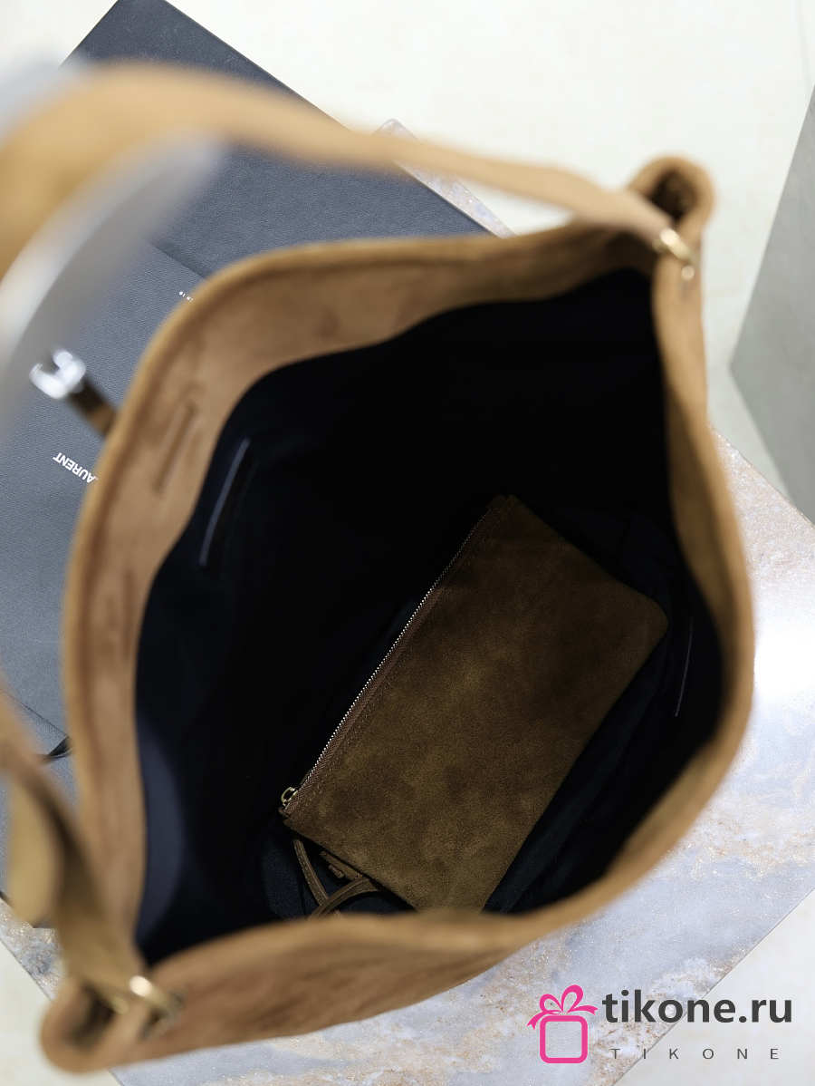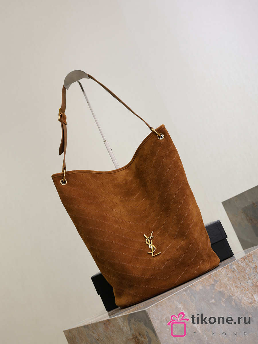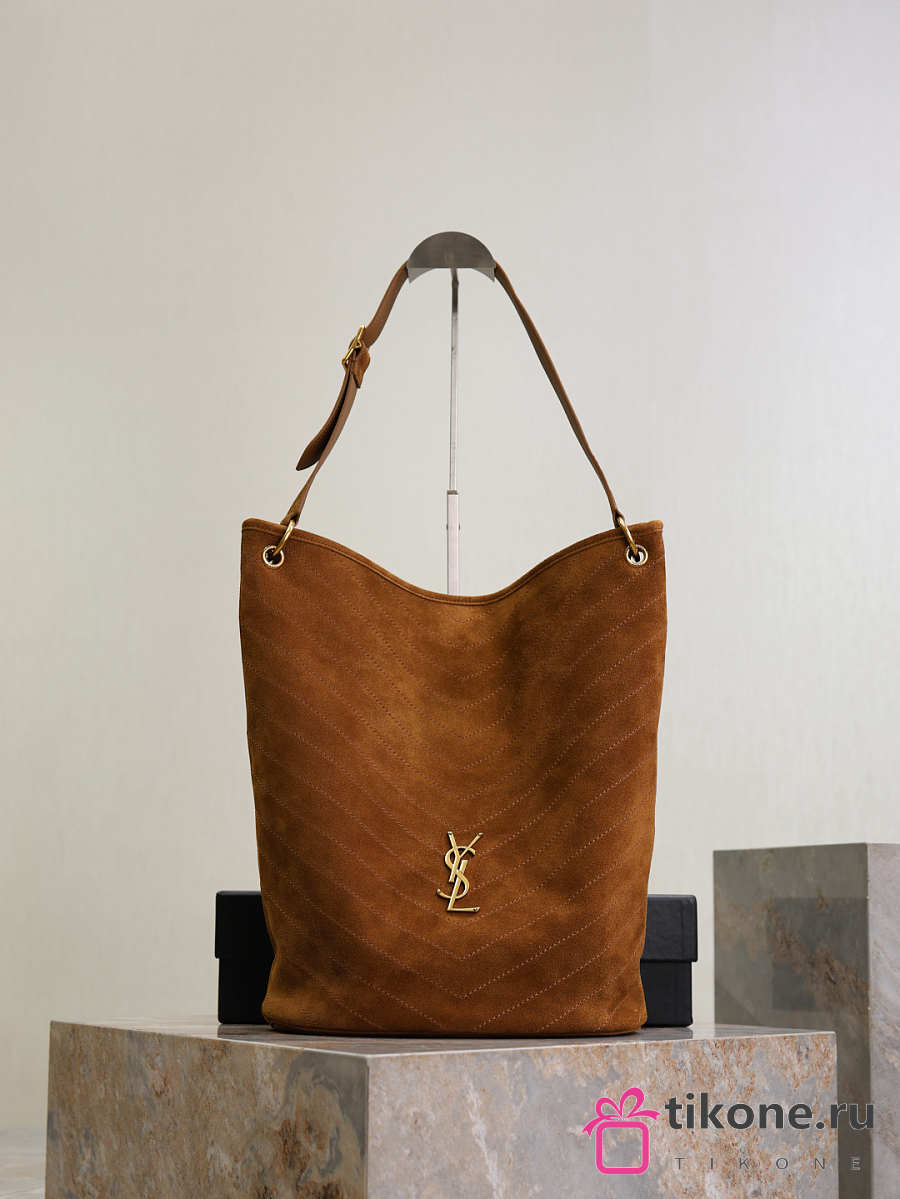 YSL Niki Supple Bucket In Suede In Caramel Cognac - 30x38x15.5cm