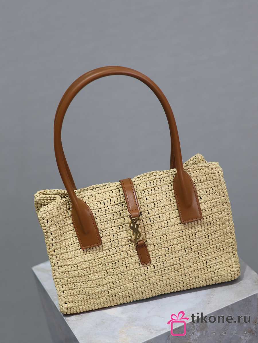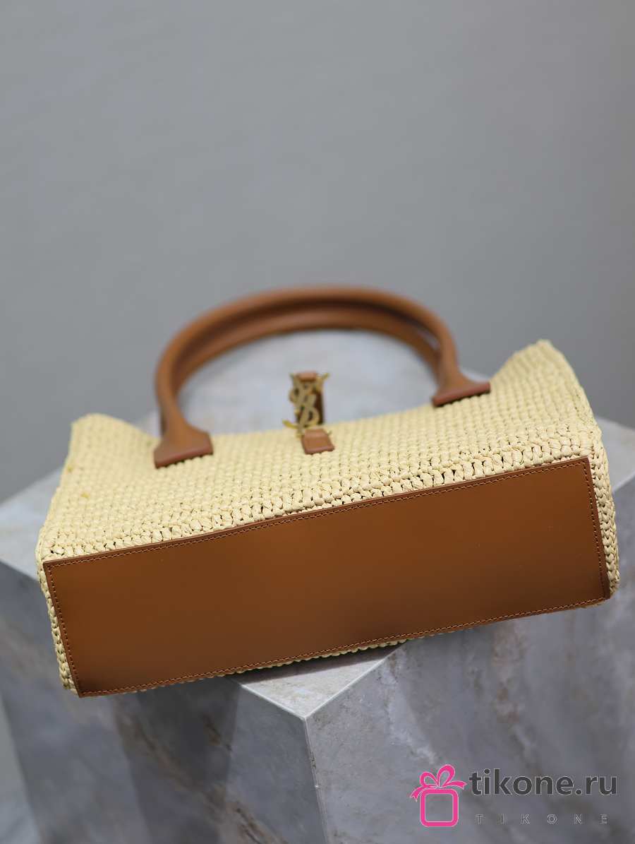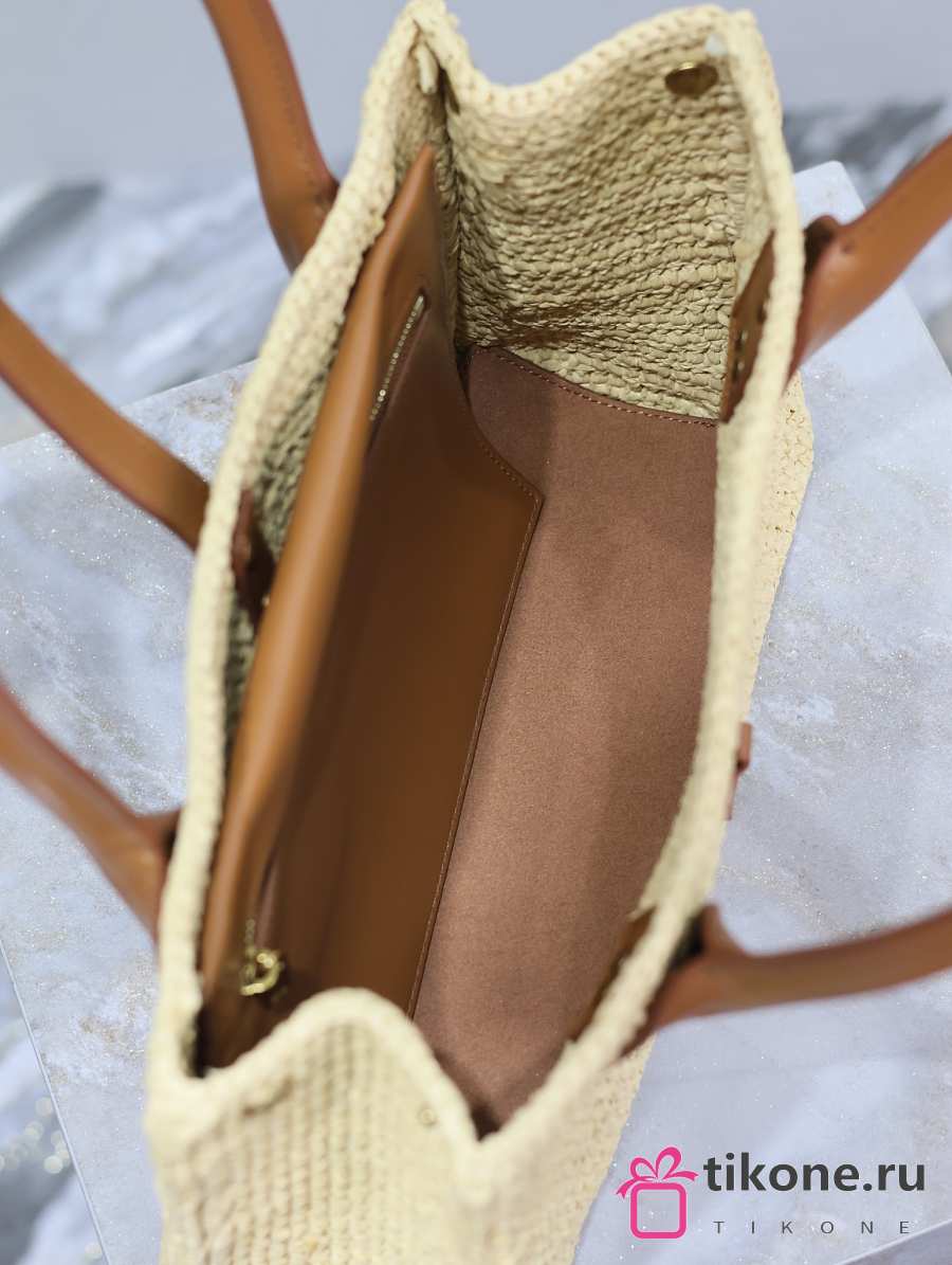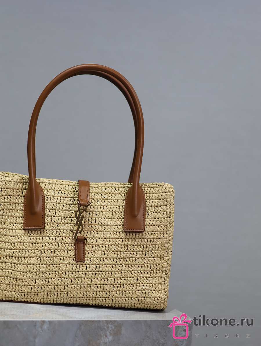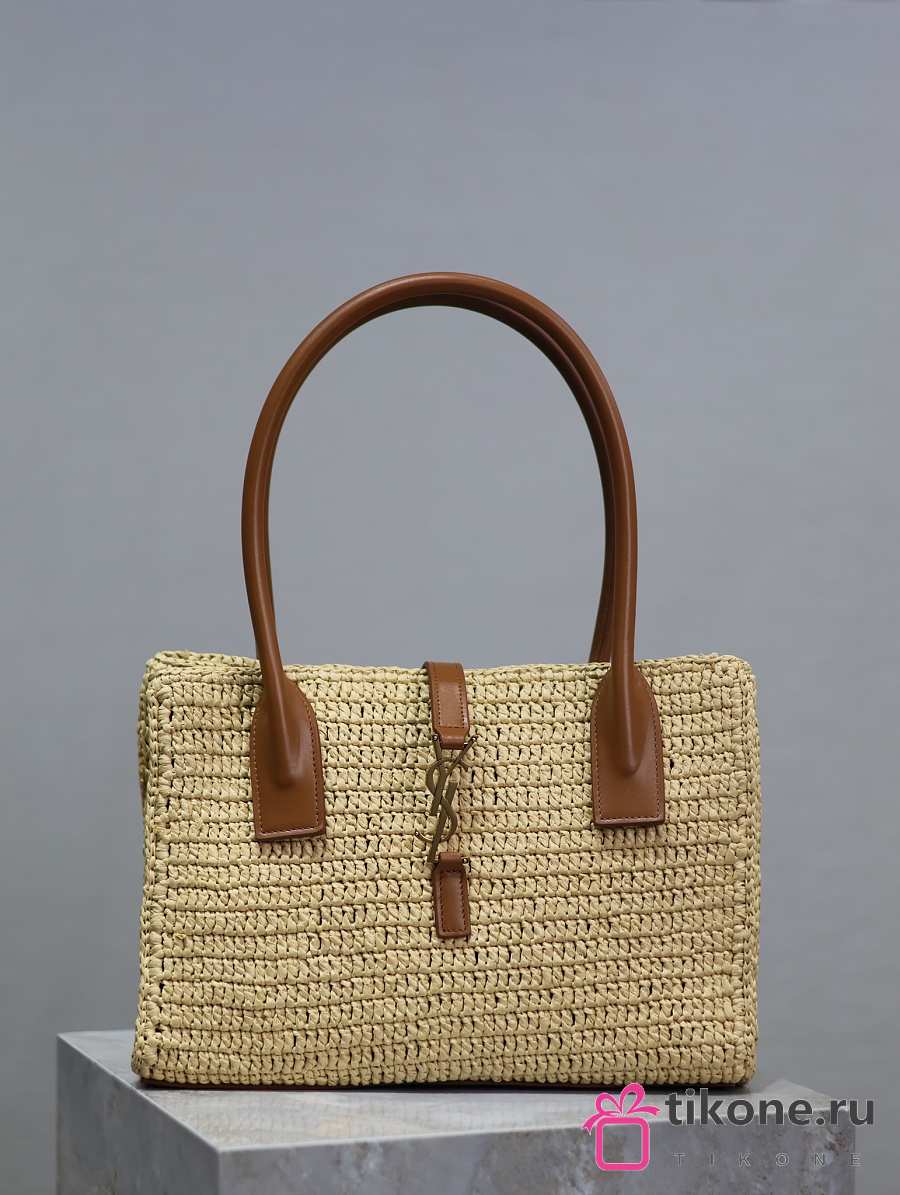 YSL Panier Rectangle Leather-Trimmed Raffia Tote Bag Natural - 29x21x9cm