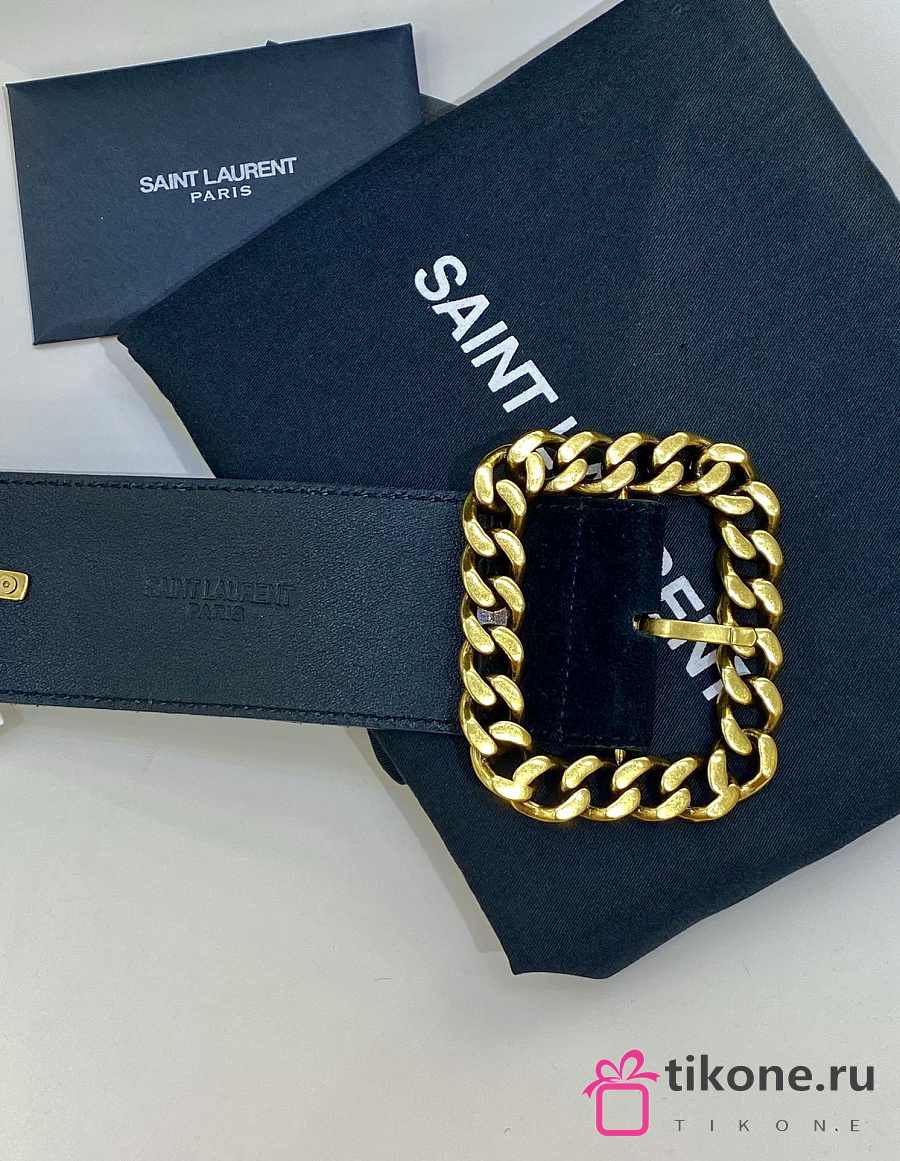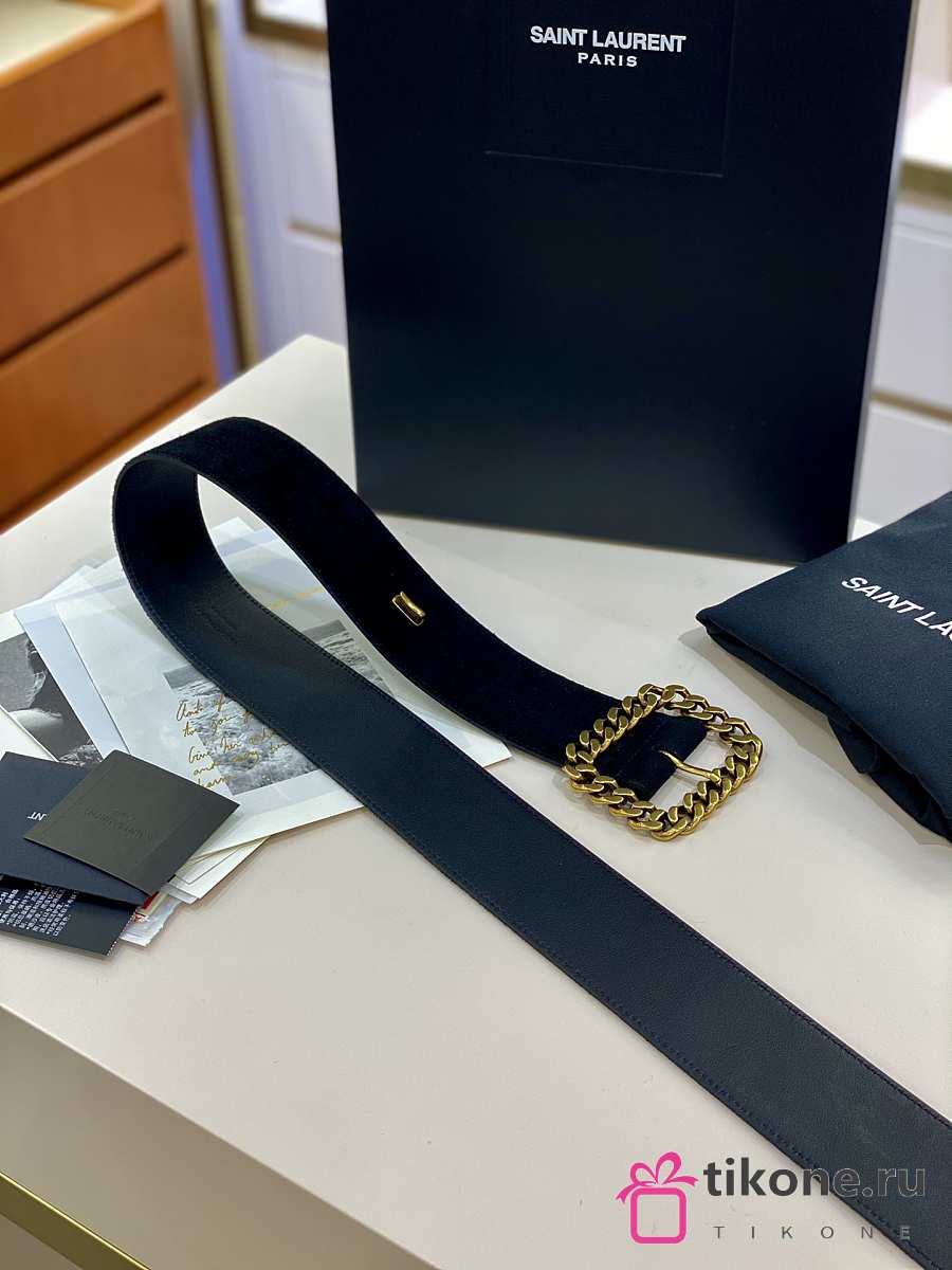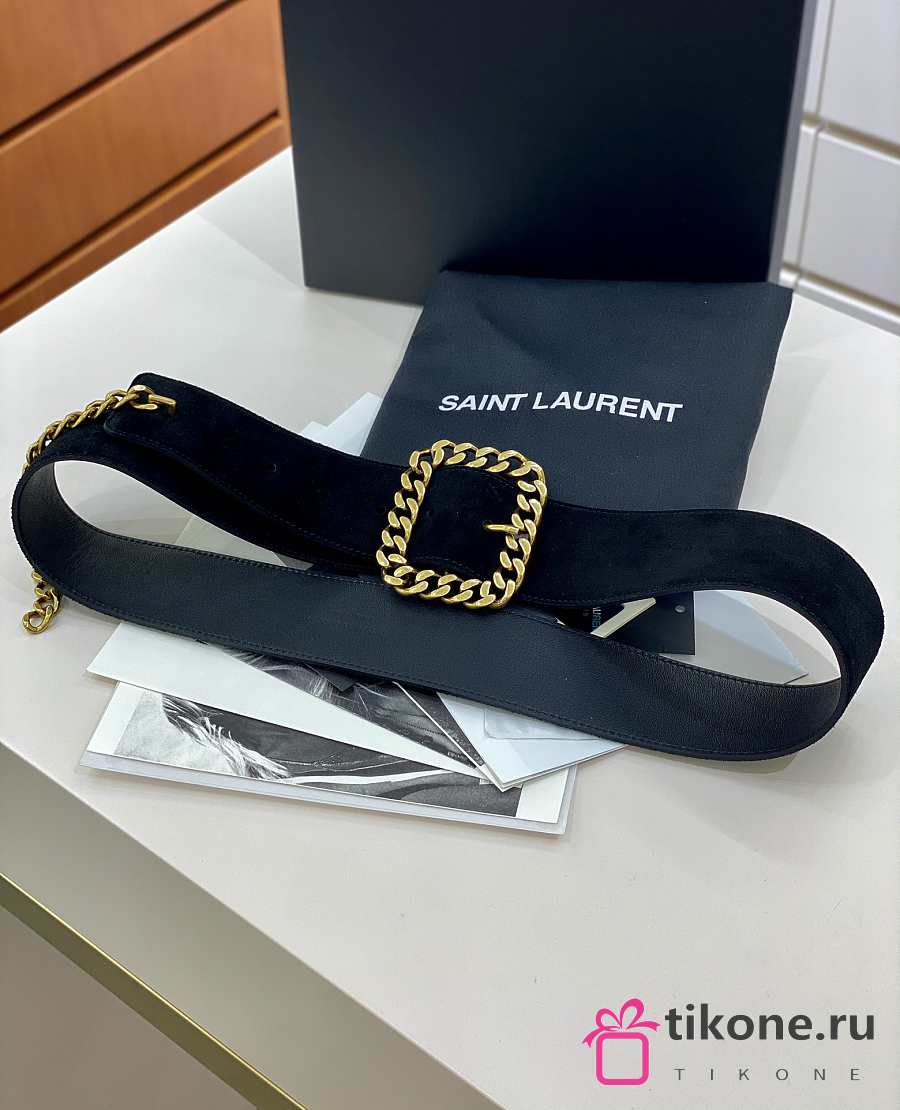 YSL Saint Laurent Black St Sulpice Chain Belt Suede 5cm