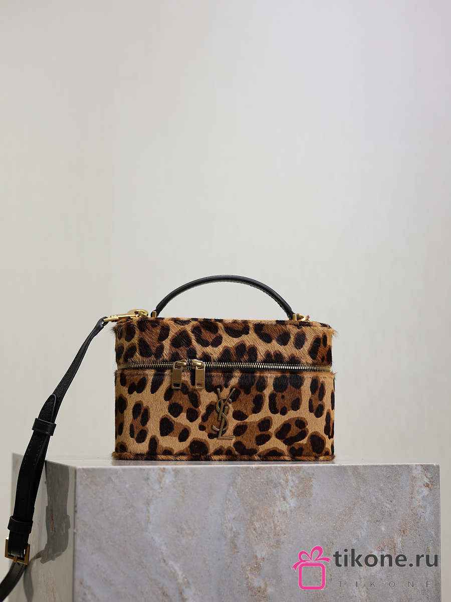 YSL Saint Laurent Gaby Leopard-Print Calf Hair Vanity Bag in Natural - 18x11x6.5cm