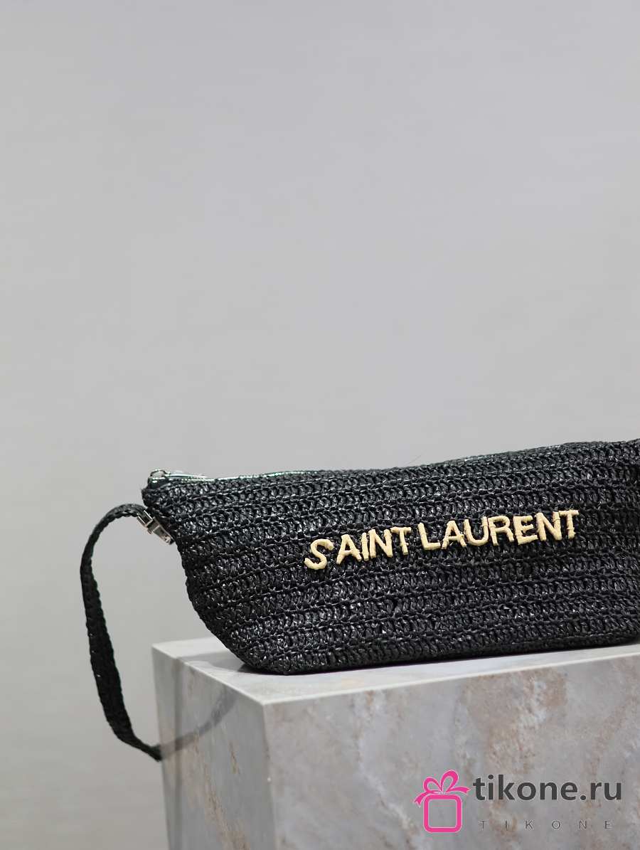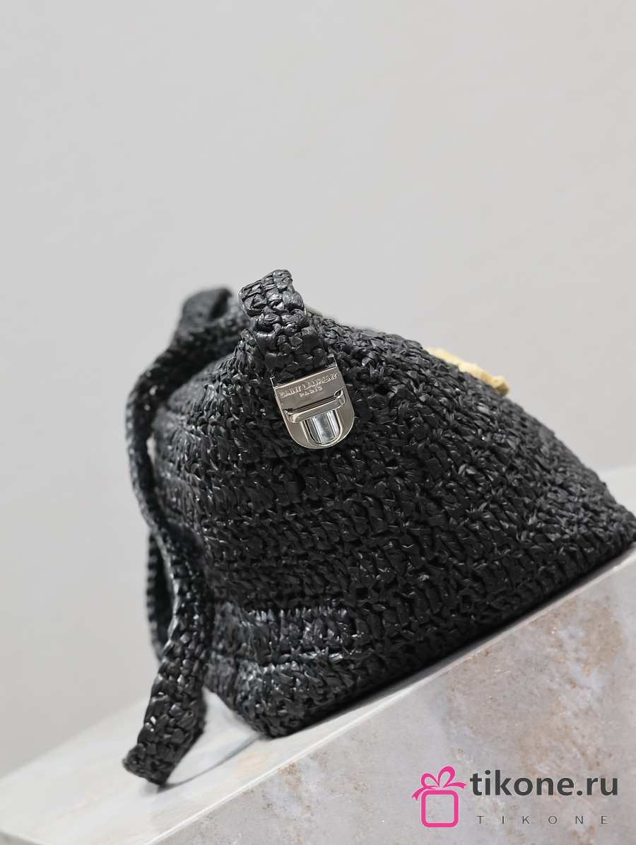 YSL Saint Laurent Le Raffia Logo Shoulder Bag Black - 23/26x14x14.5cm