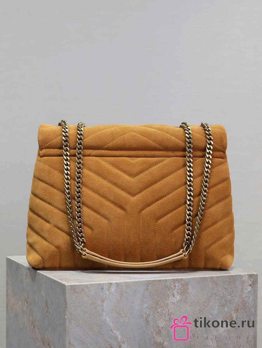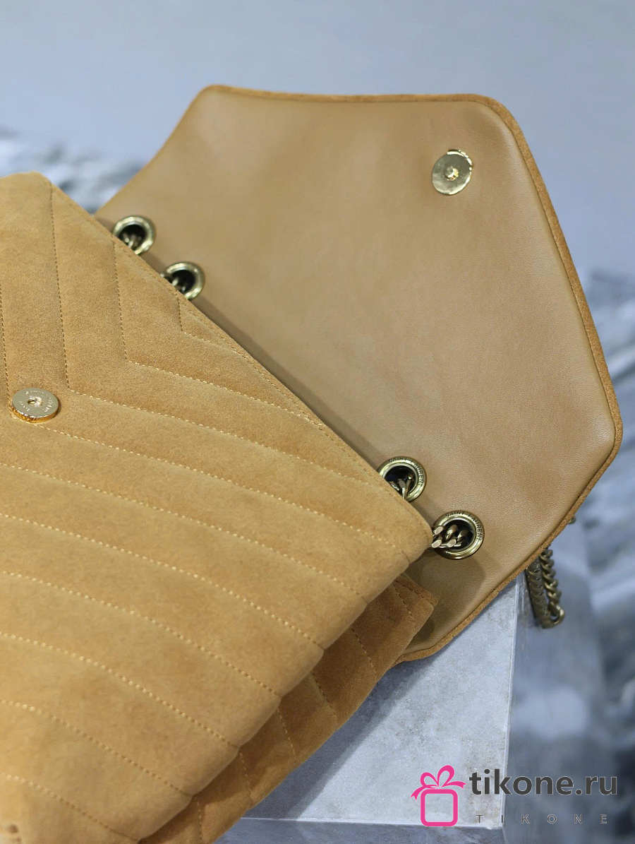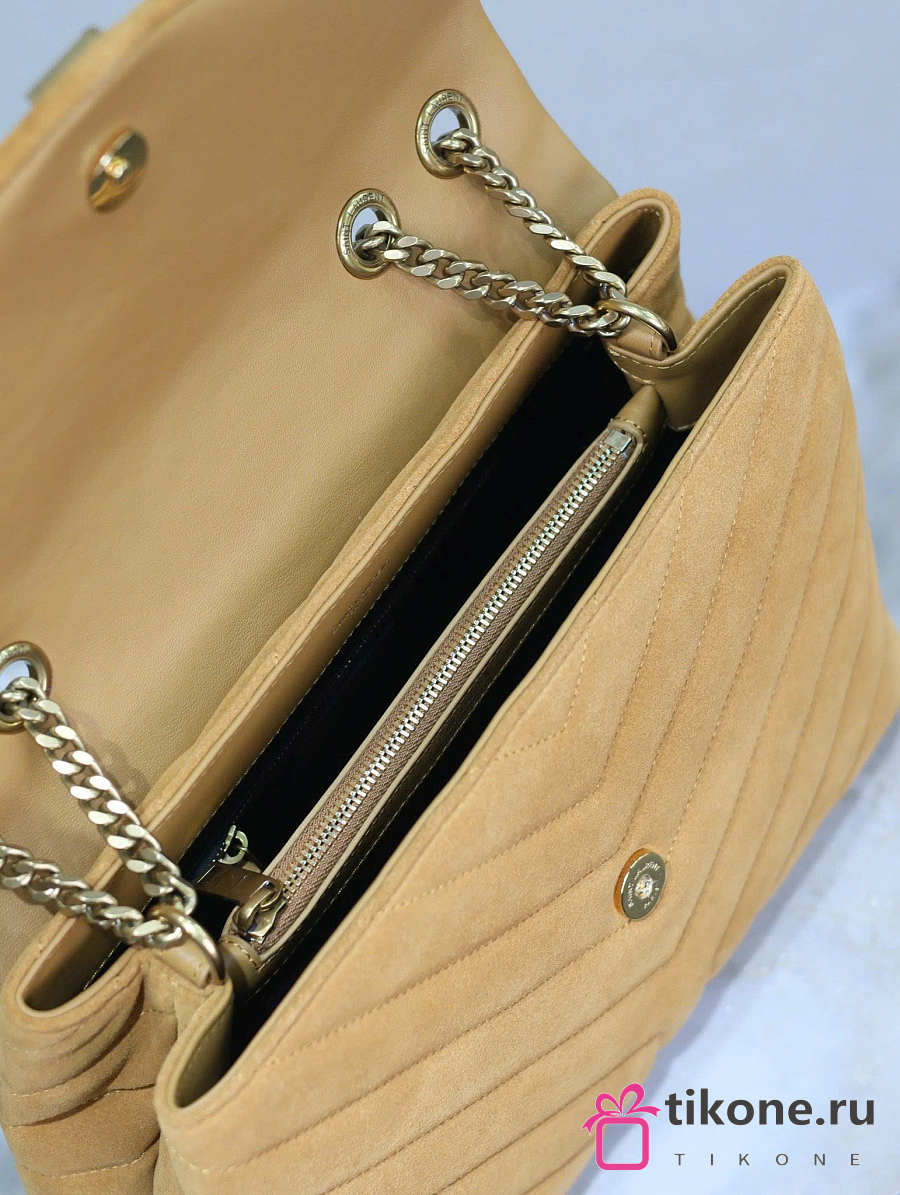 YSL Saint Laurent Loulou Medium Shoulder Bag Suede Brown - 32x22x12cm