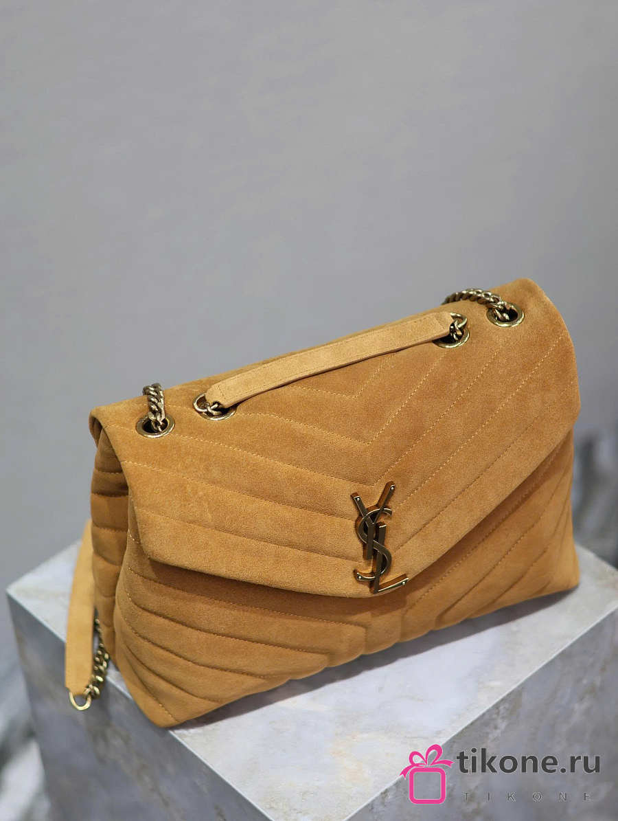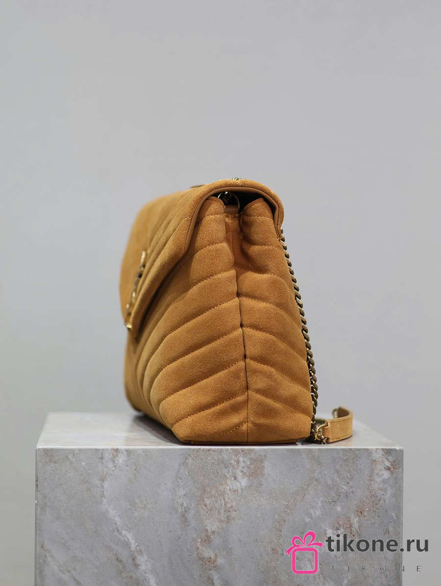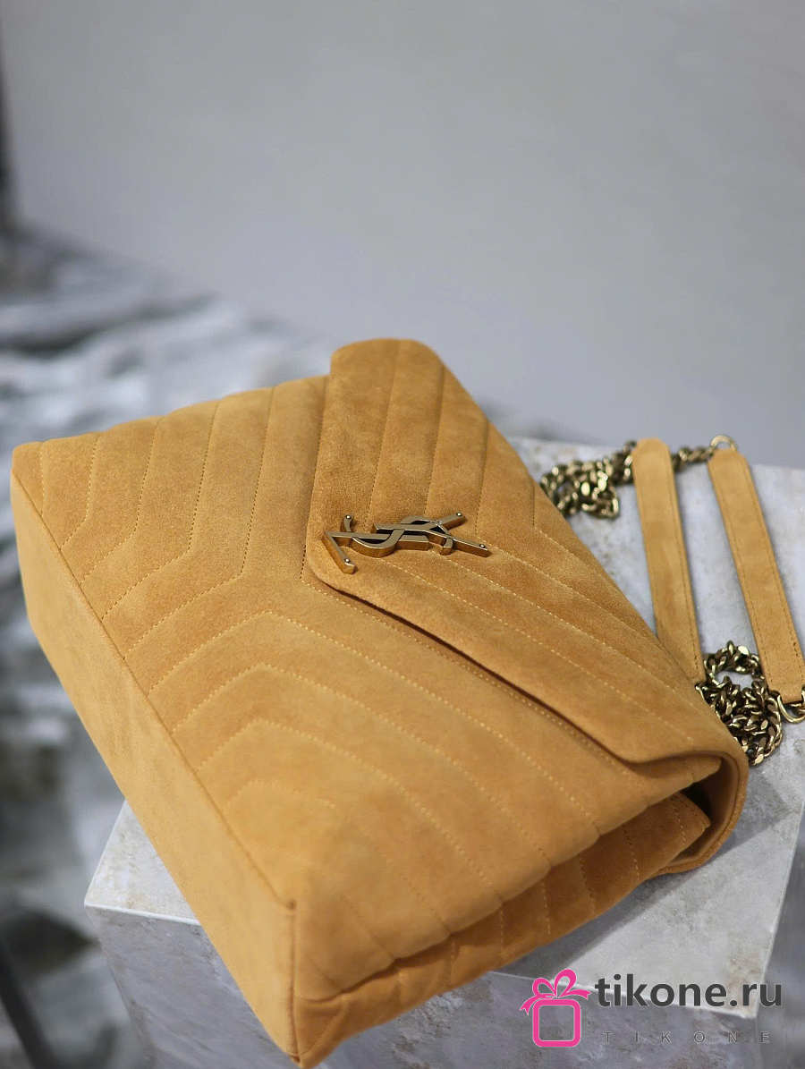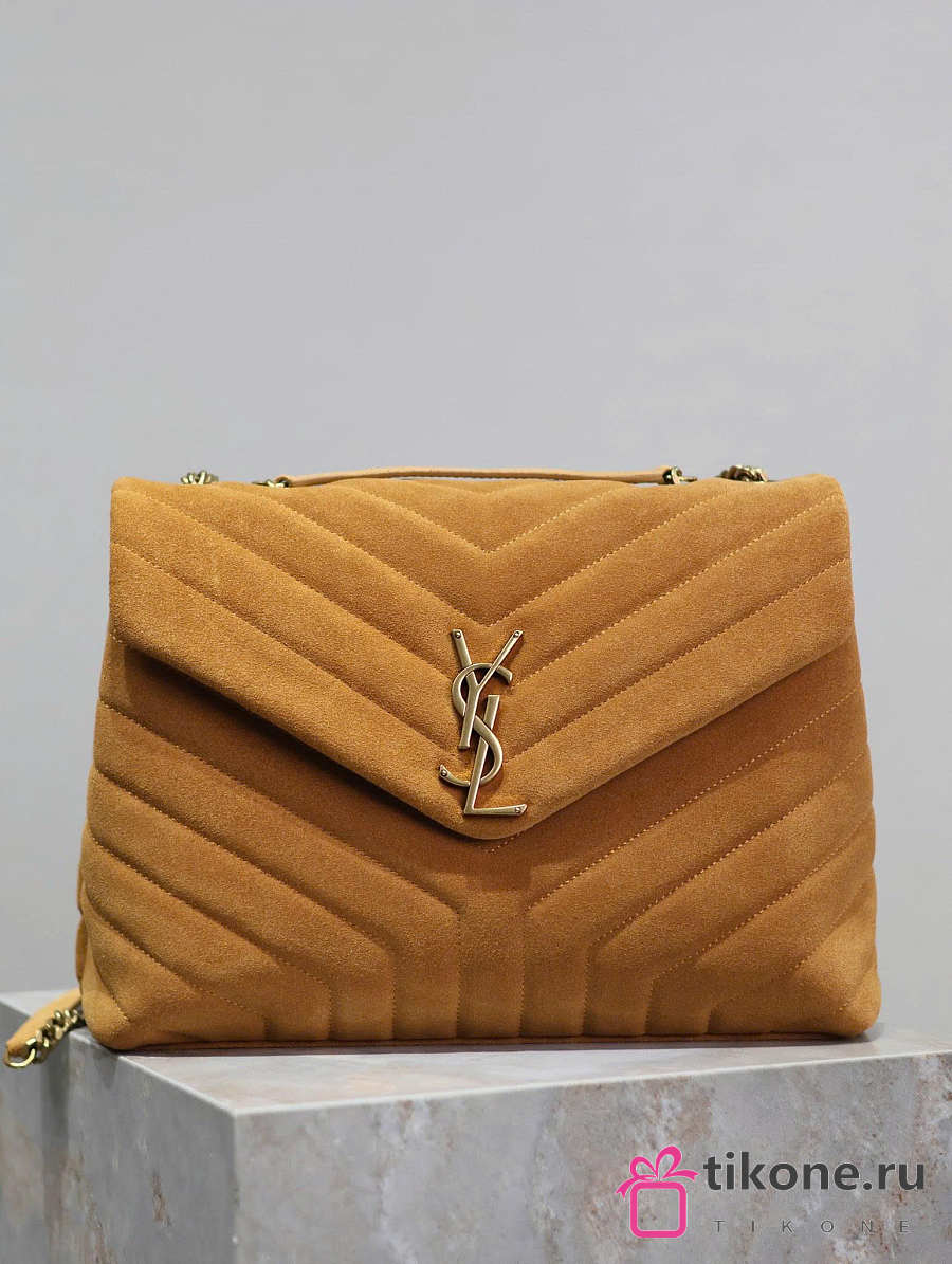 YSL Saint Laurent Loulou Medium Shoulder Bag Suede Brown - 32x22x12cm