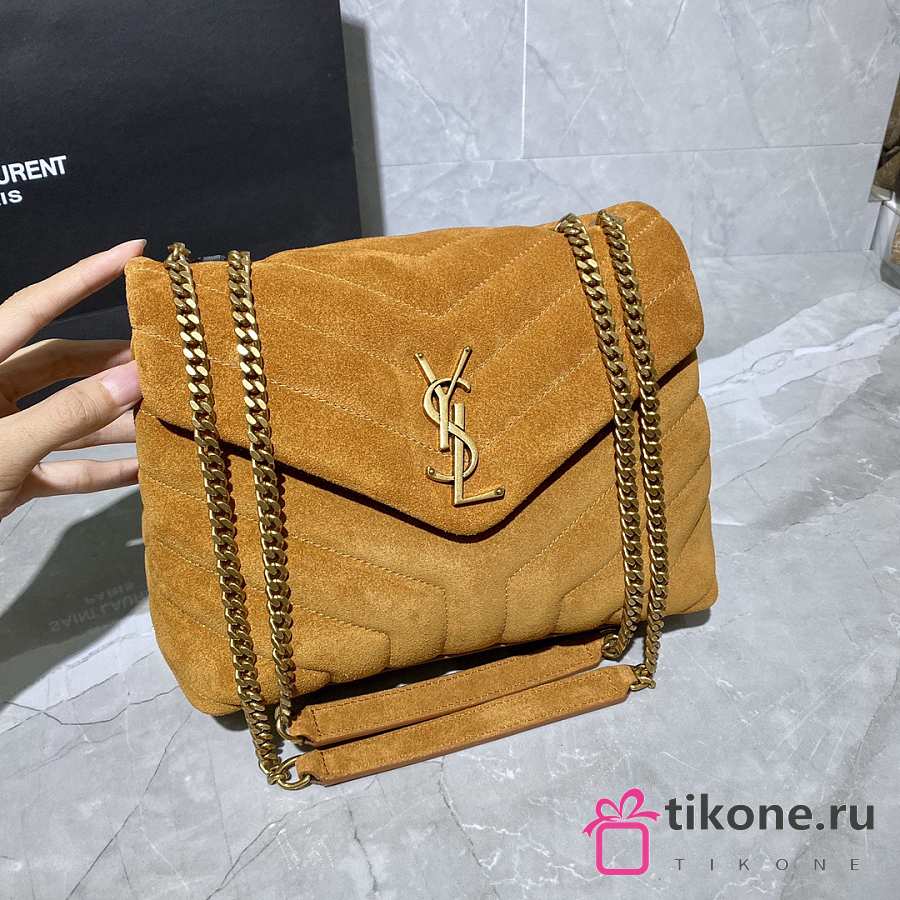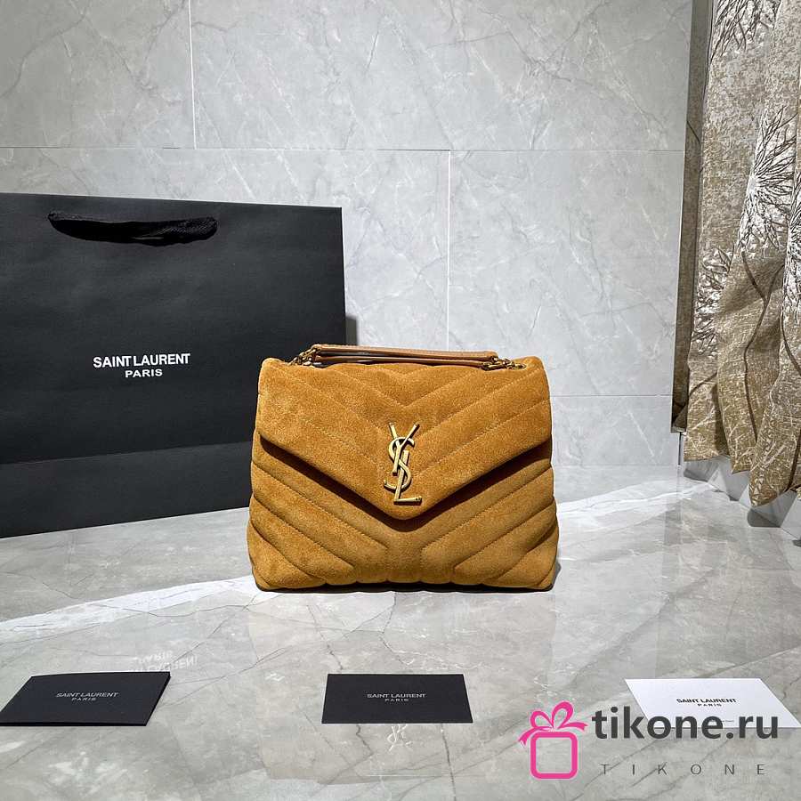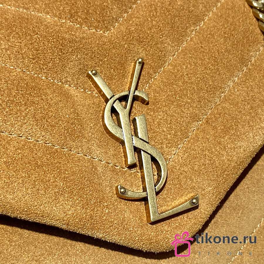 YSL Saint Laurent Loulou Small Shoulder Bag Suede Brown - 24.5x18x10cm
