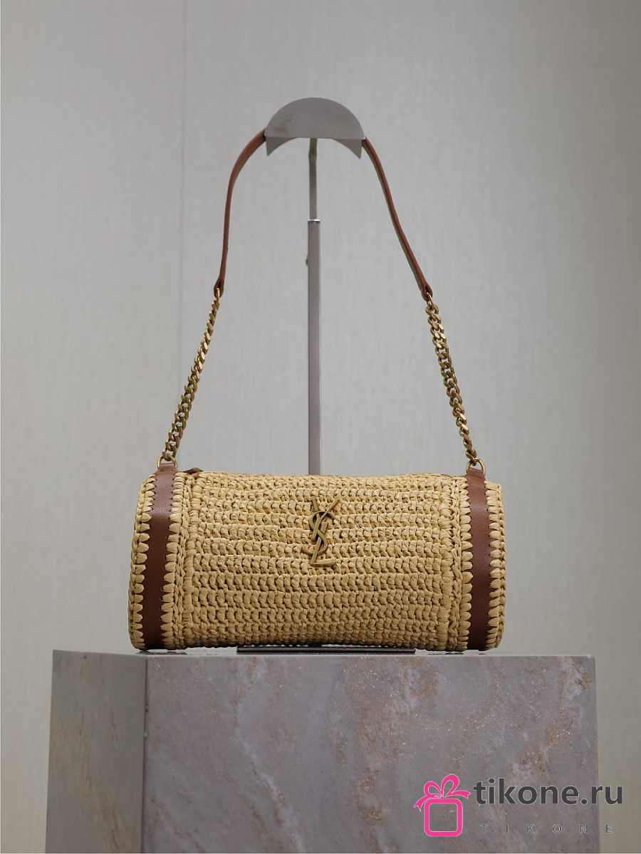 YSL Small Sade Raffia Shoulder Bag Natural - 30x12x10cm