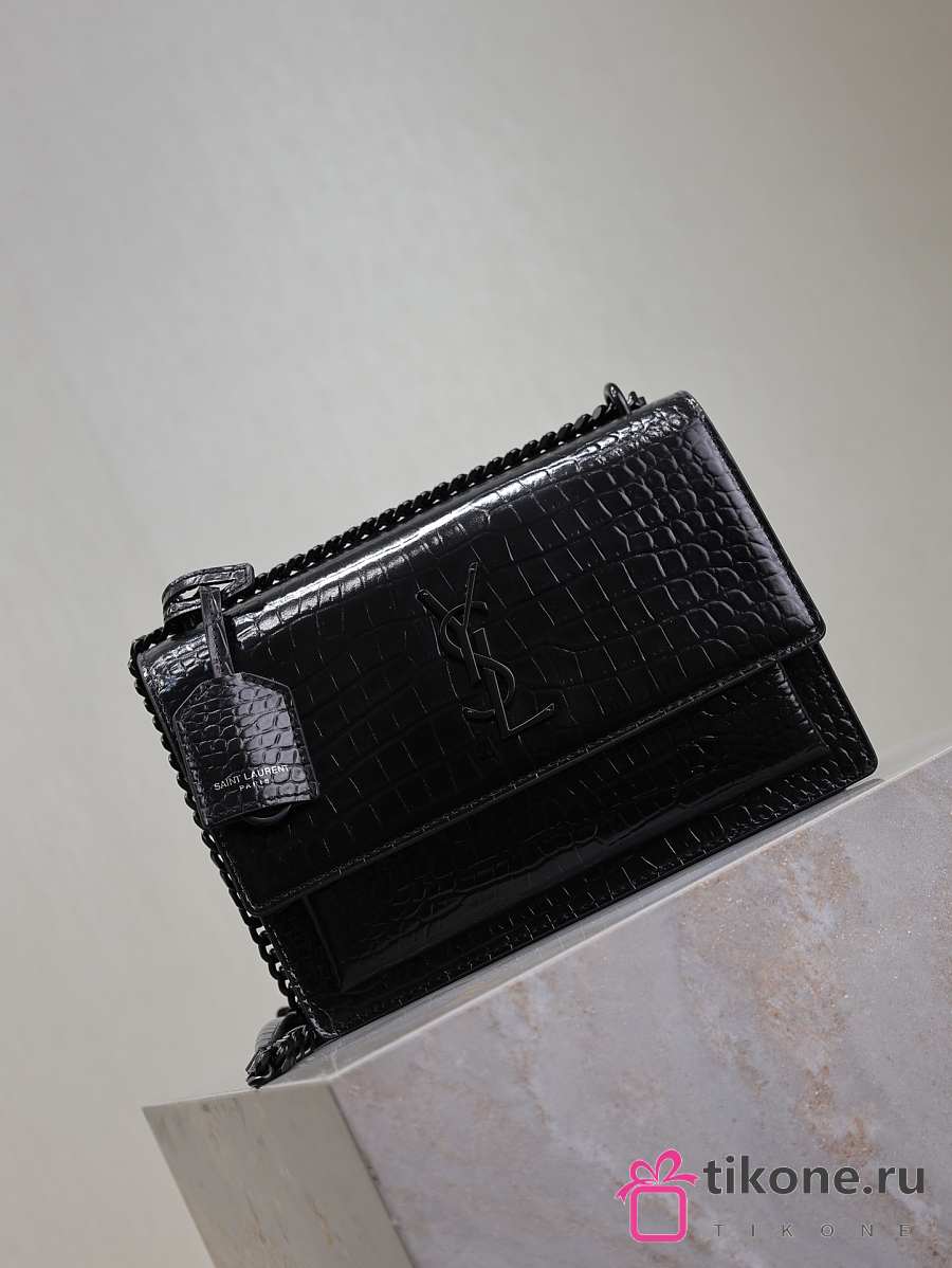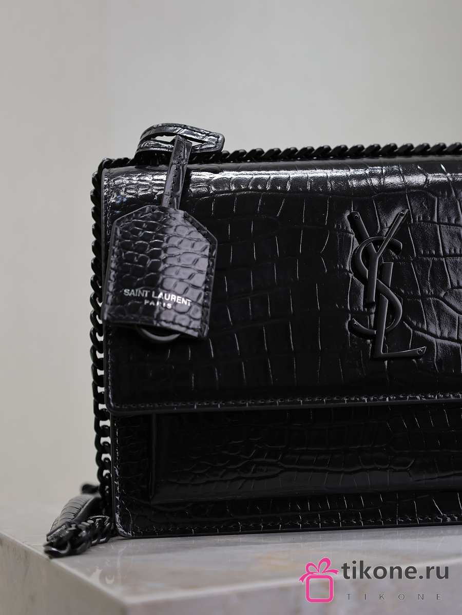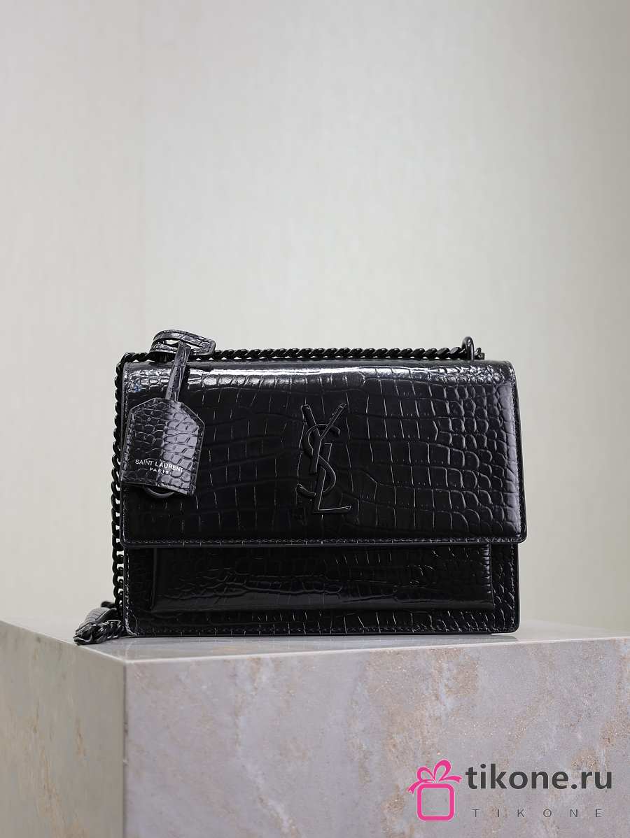 YSL Sunset Medium In Crocodile Embossed Leather Black - 22x8x16