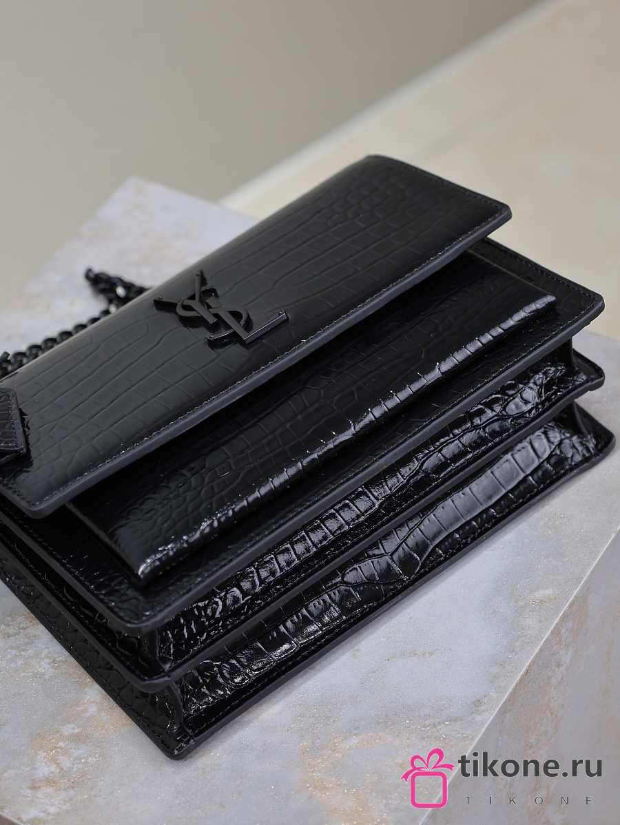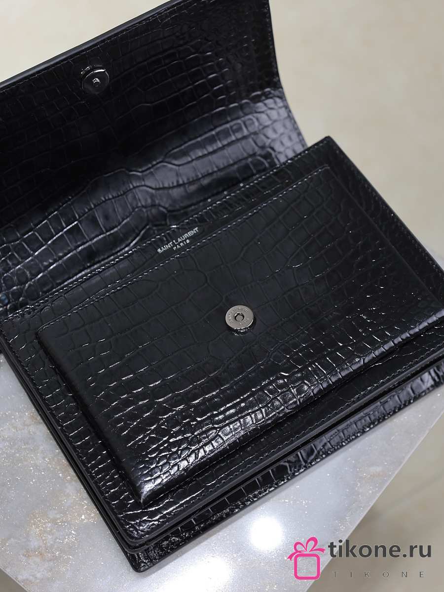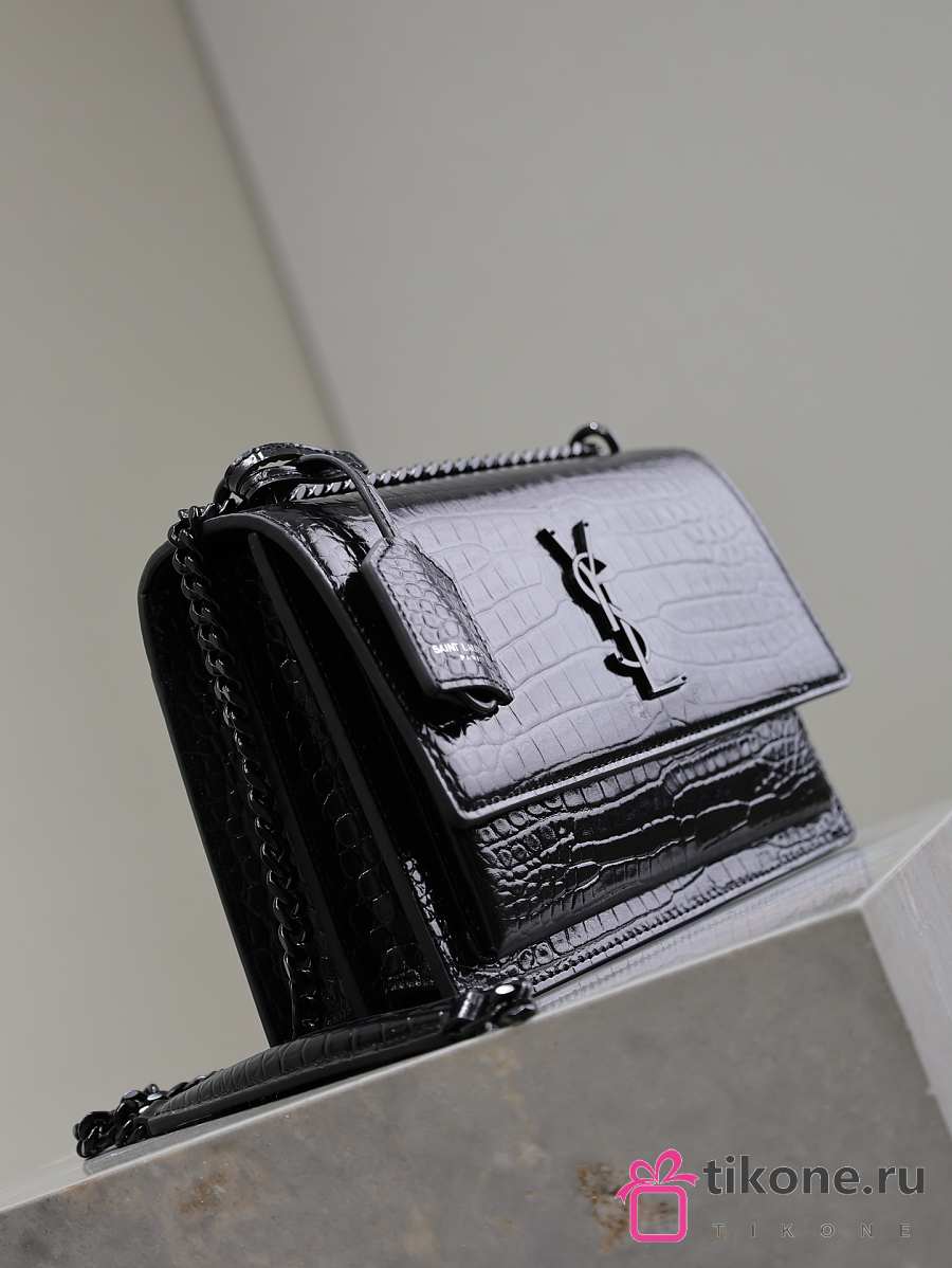 YSL Sunset Medium In Crocodile Embossed Leather Black - 22x8x16