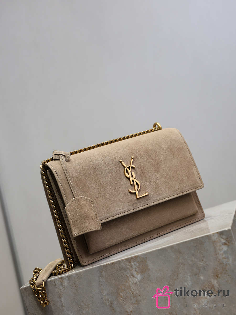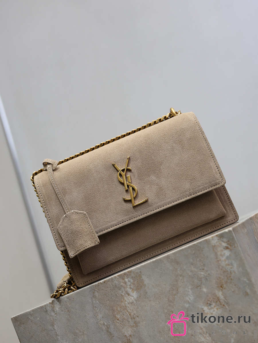 YSL Sunset Medium In Suede Leather Gray Matte - 22x8x16cm
