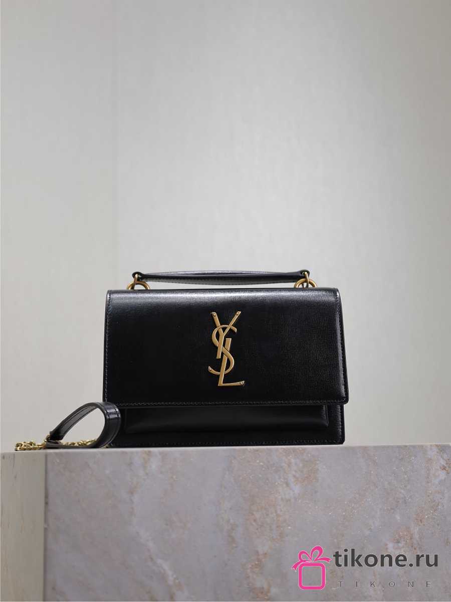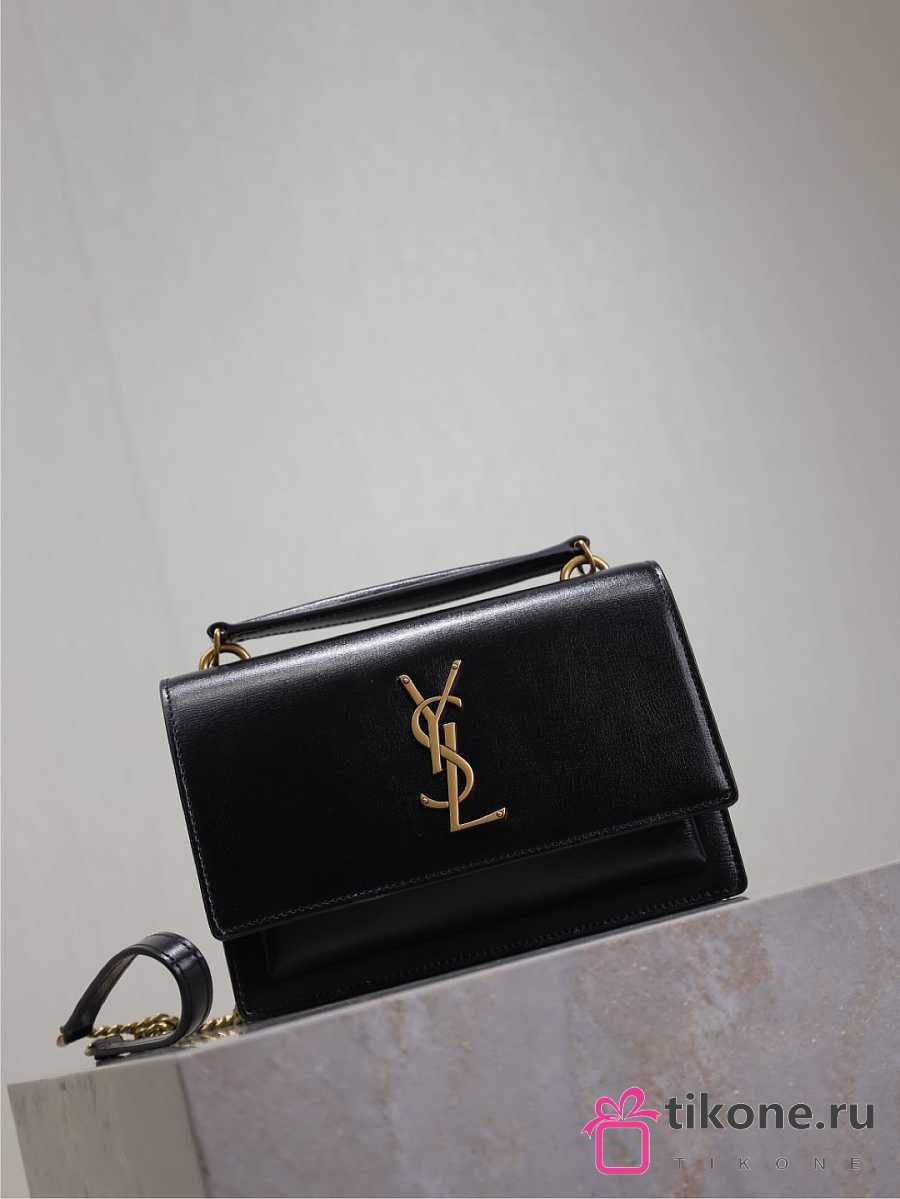 YSL Sunset Small In Smooth Leather Black Gold - 19x13x8cm