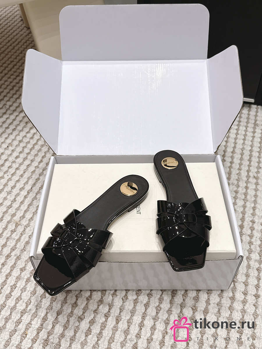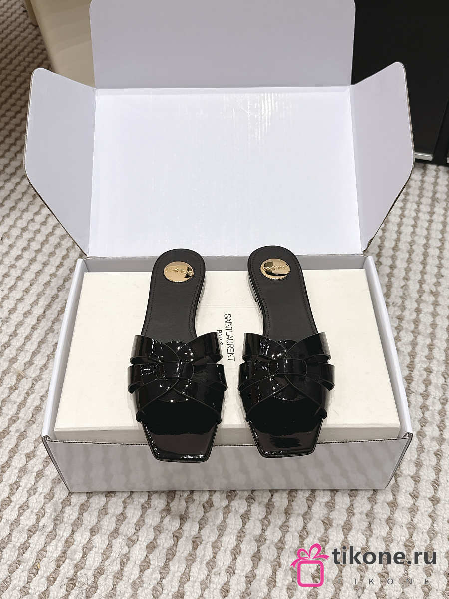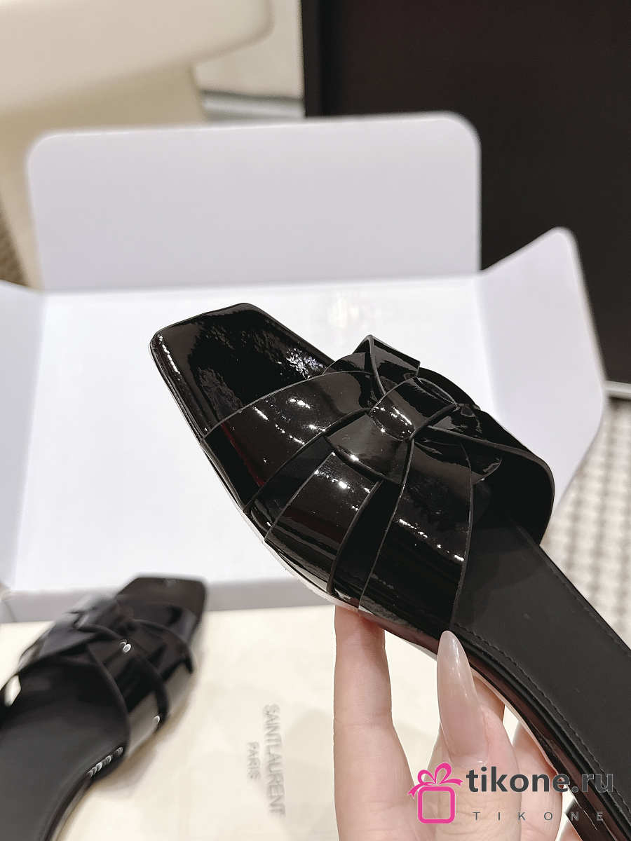 YSL Tribute Mules In Patent Leather Black