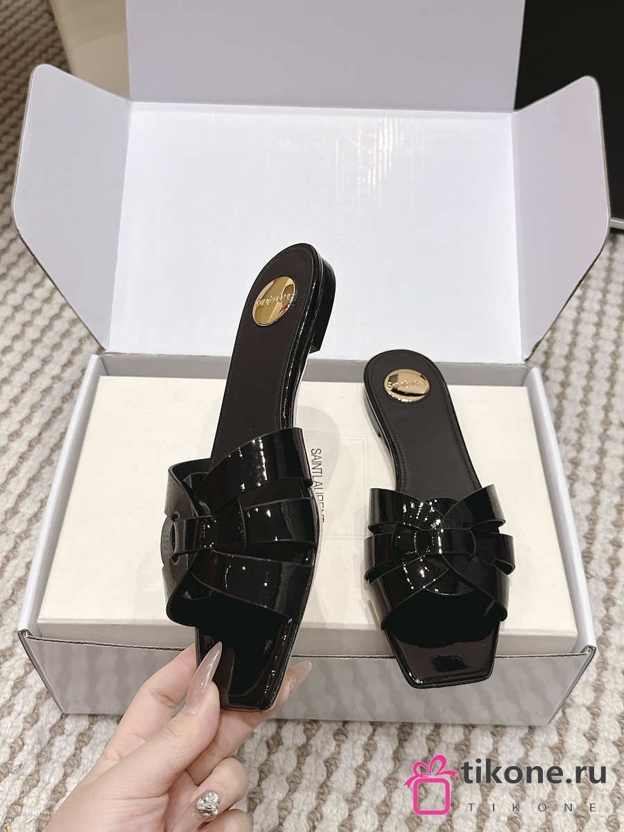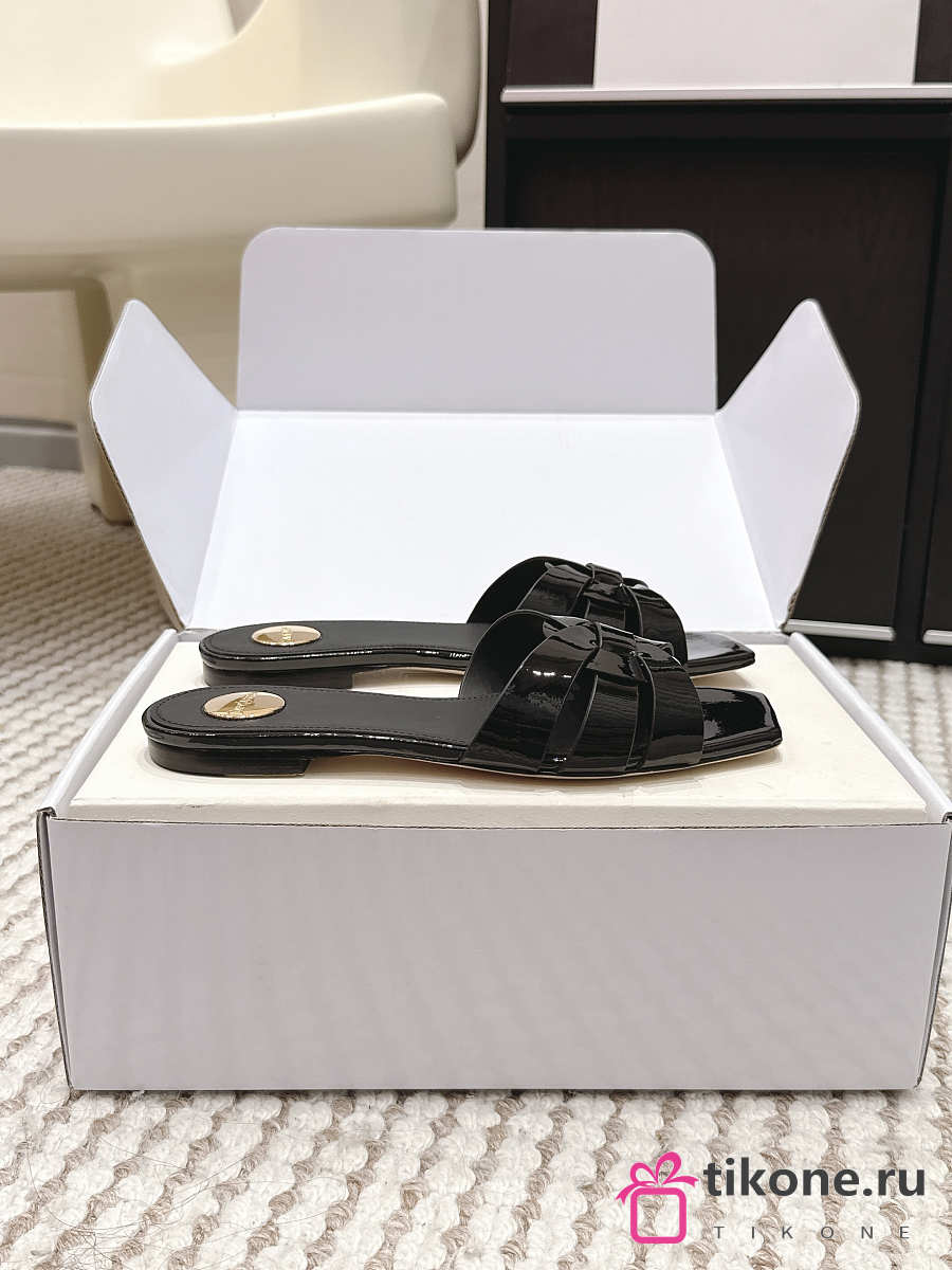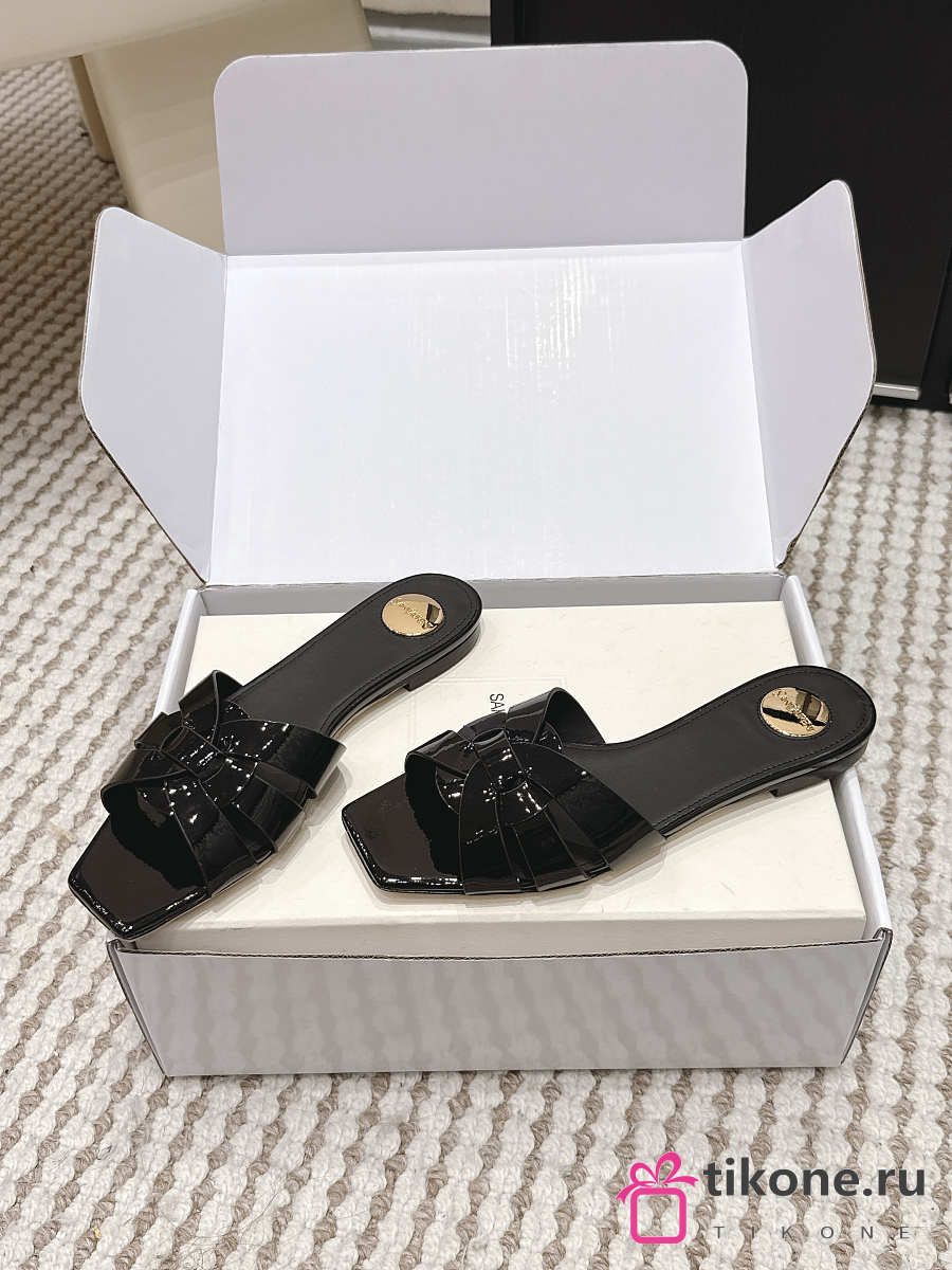 YSL Tribute Mules In Patent Leather Black