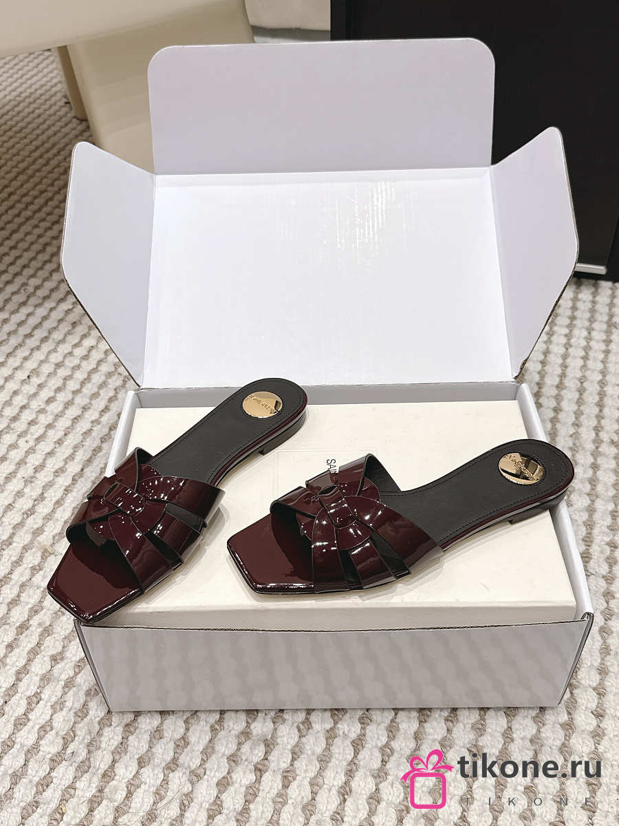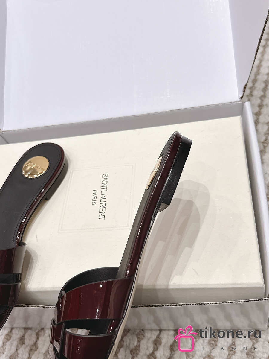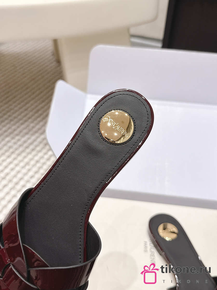 YSL Tribute Mules In Patent Leather Burgundy