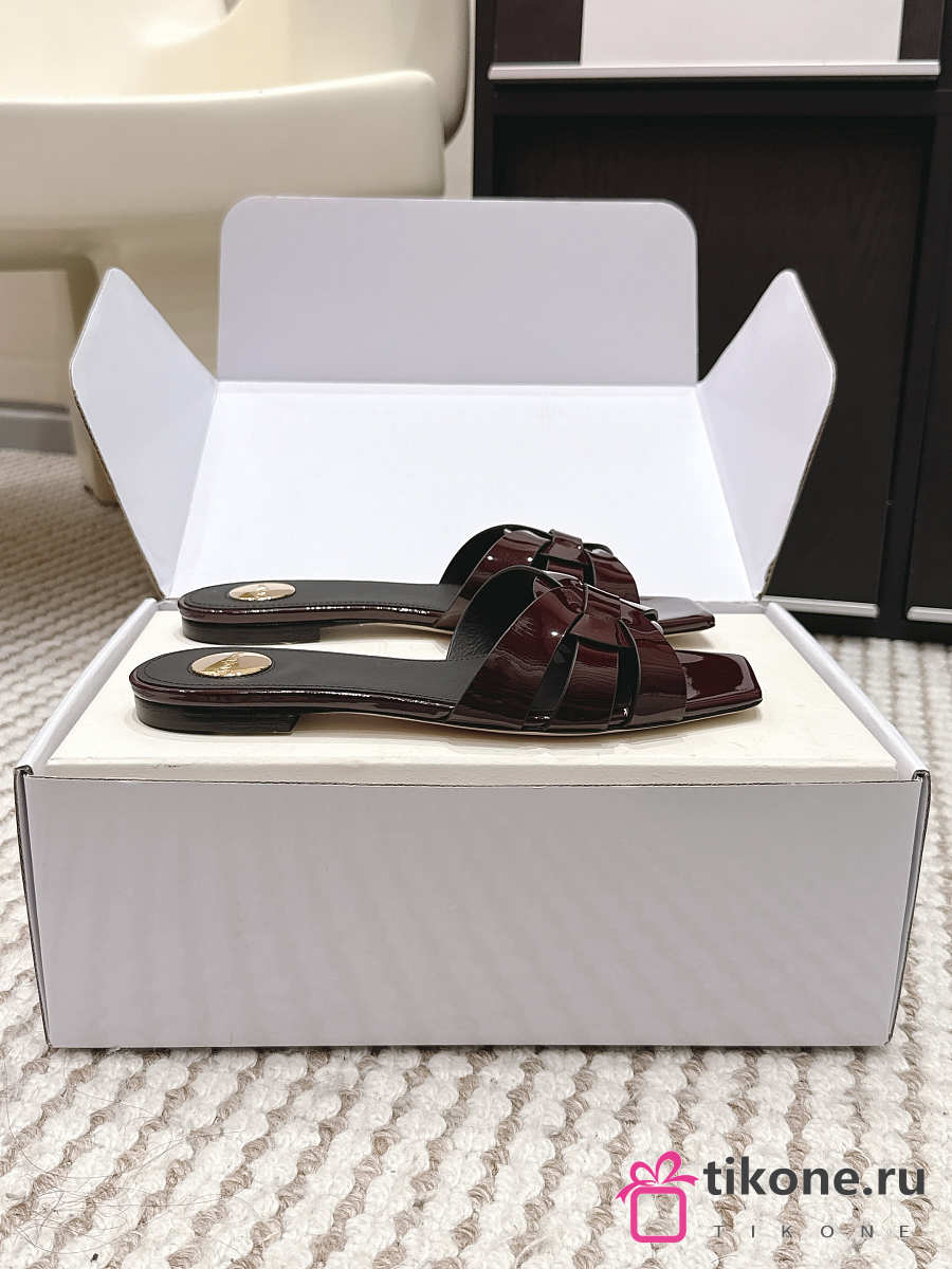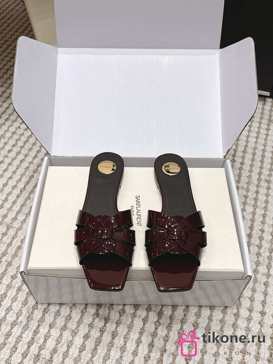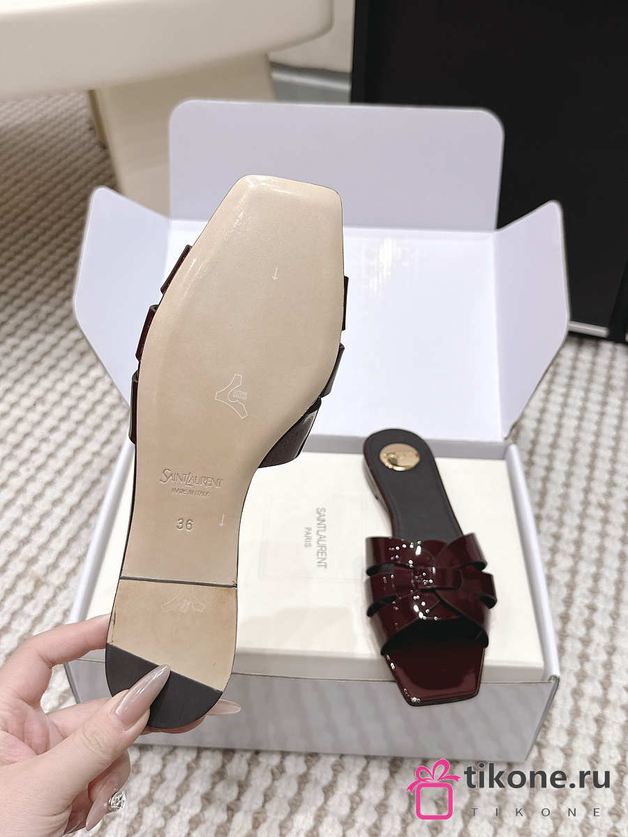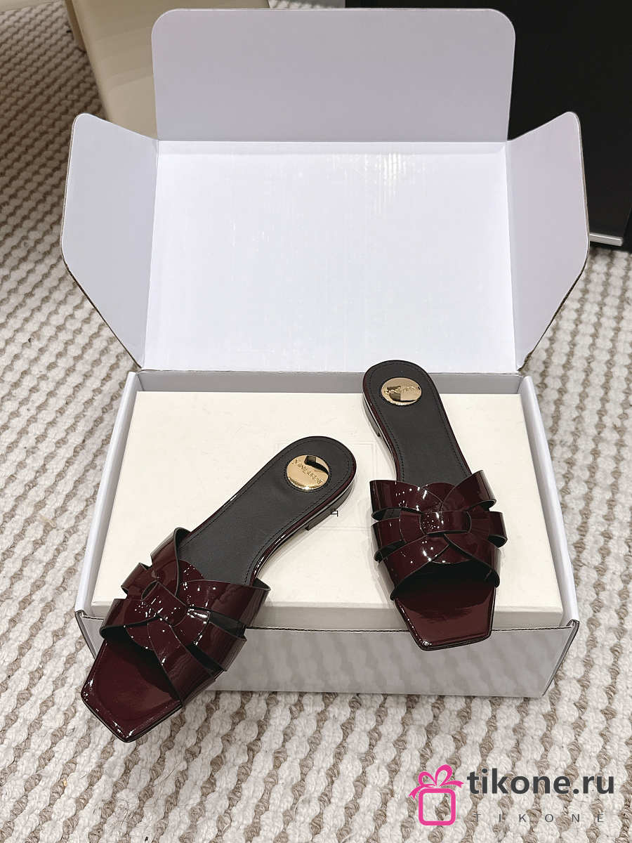 YSL Tribute Mules In Patent Leather Burgundy