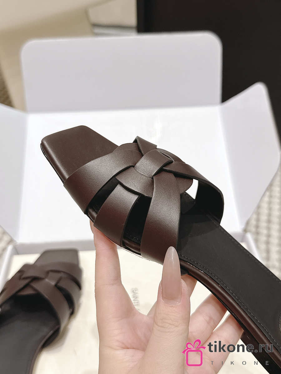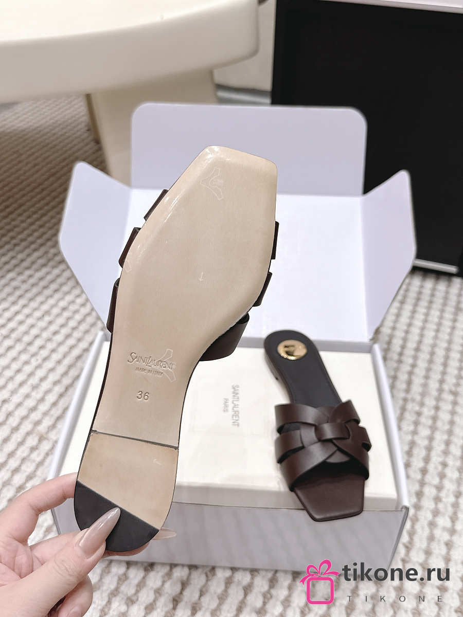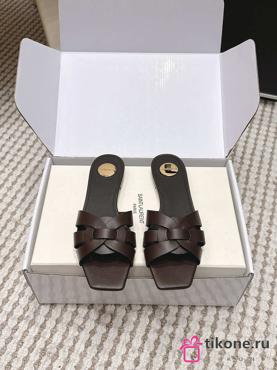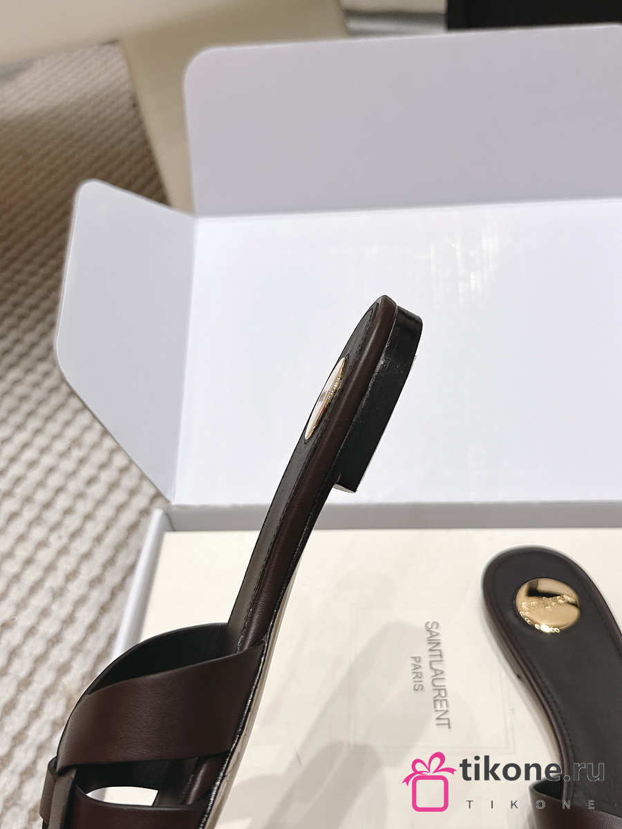 YSL Tribute Mules In Smooth Leather Dark Brown