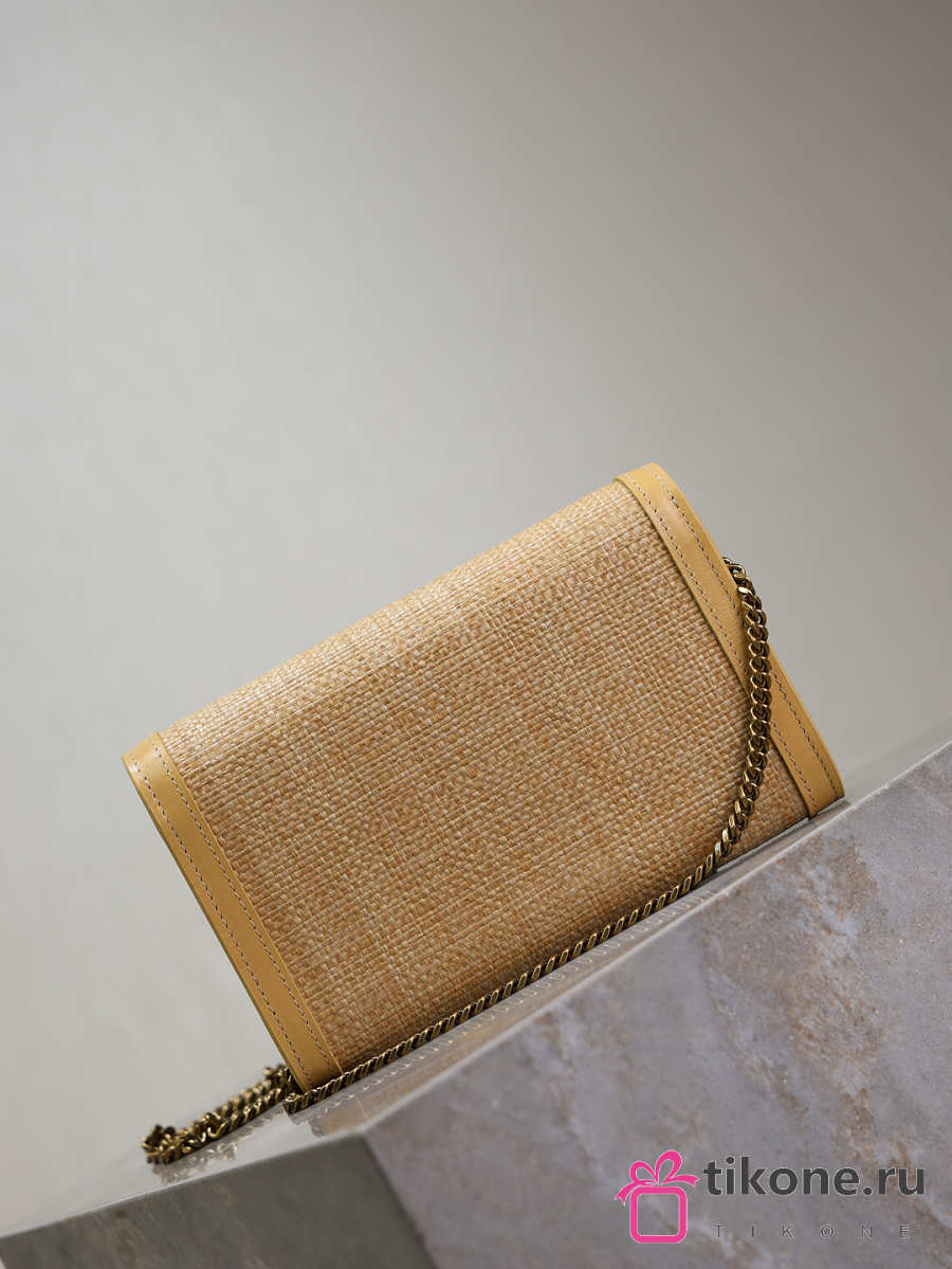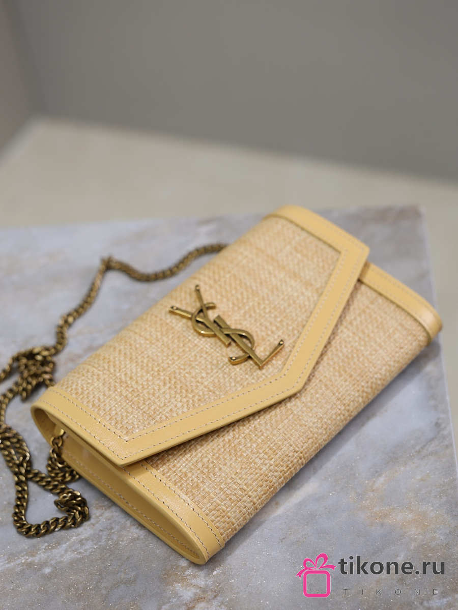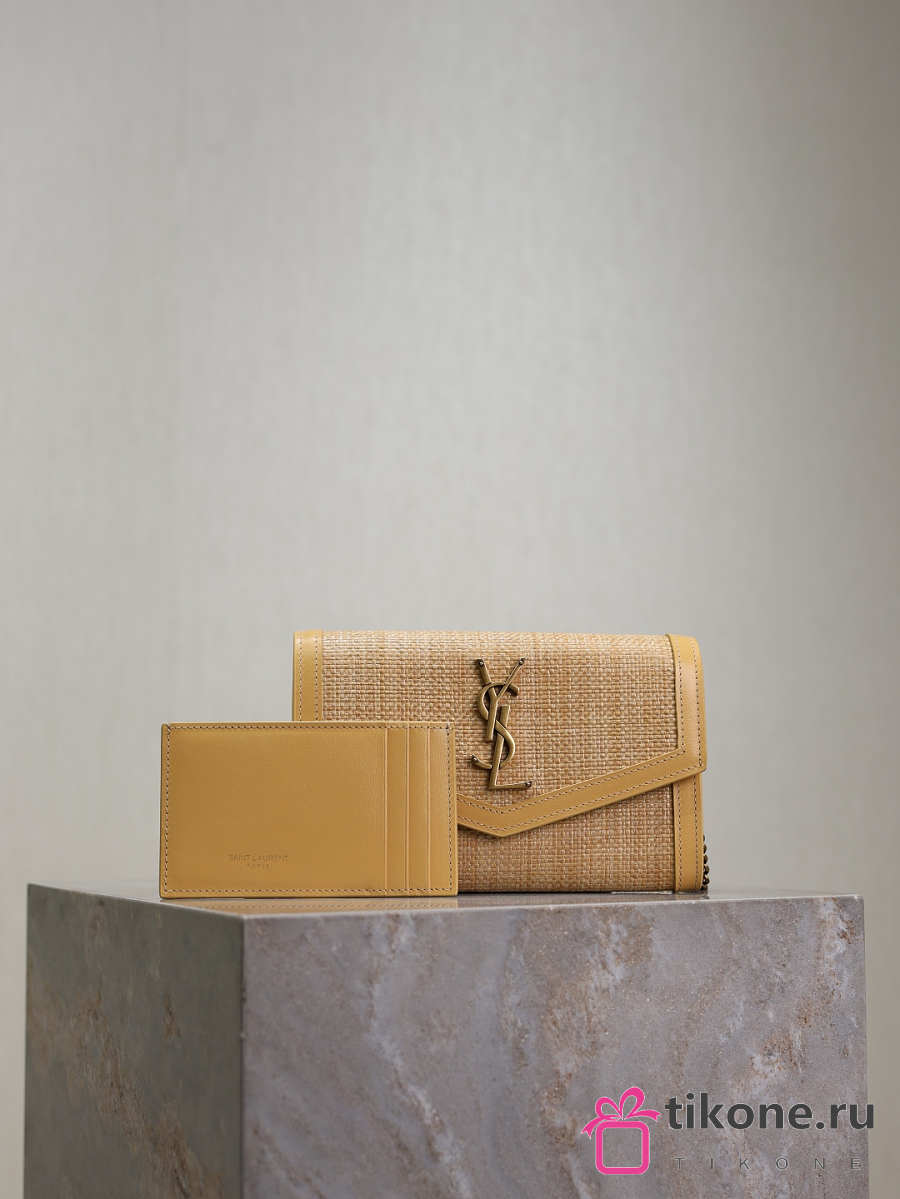 YSL Uptown Chain Wallet In Micro Raffia Natural Hay & Blush - 19x12x3cm