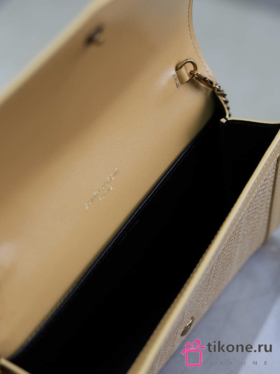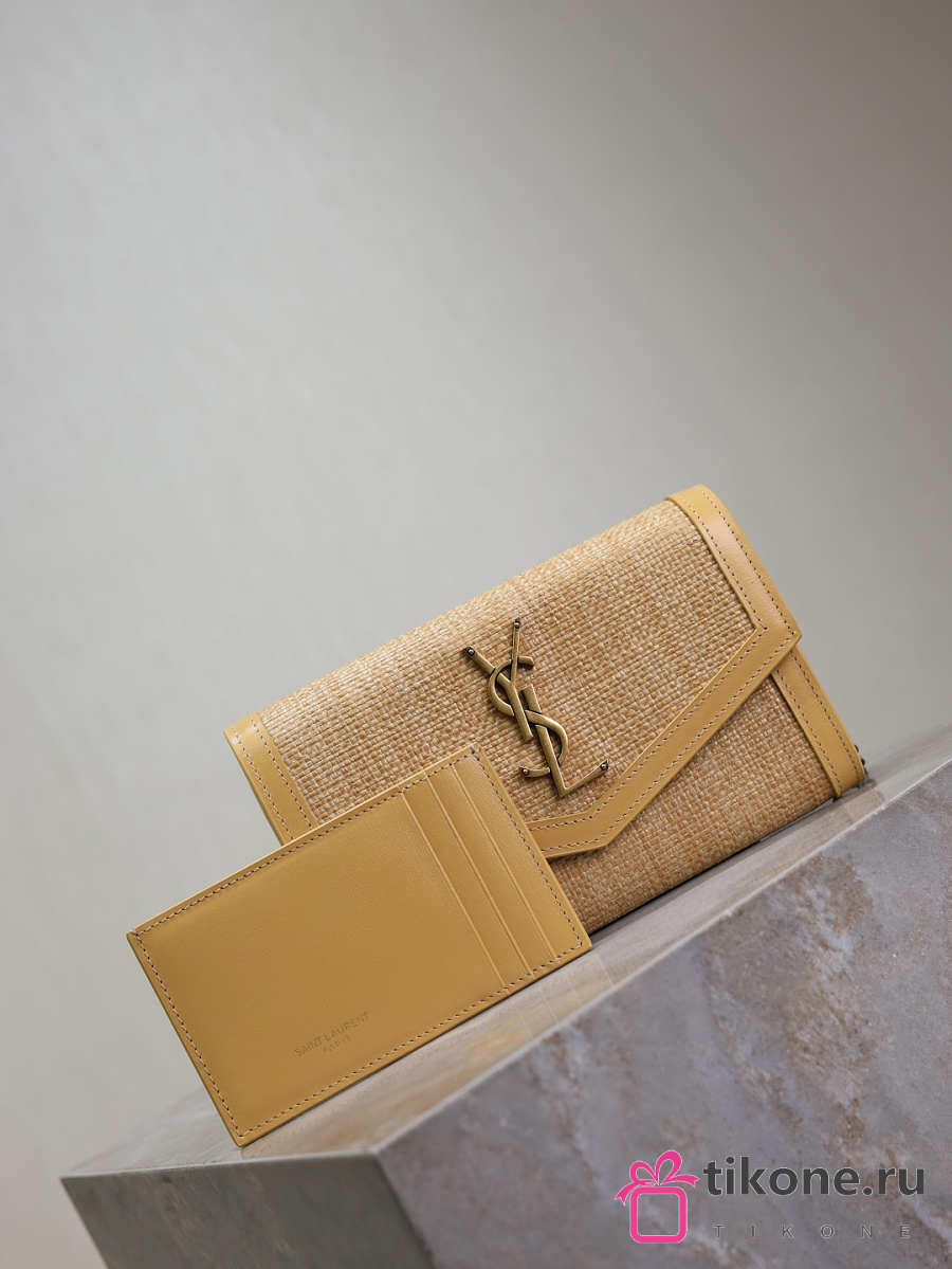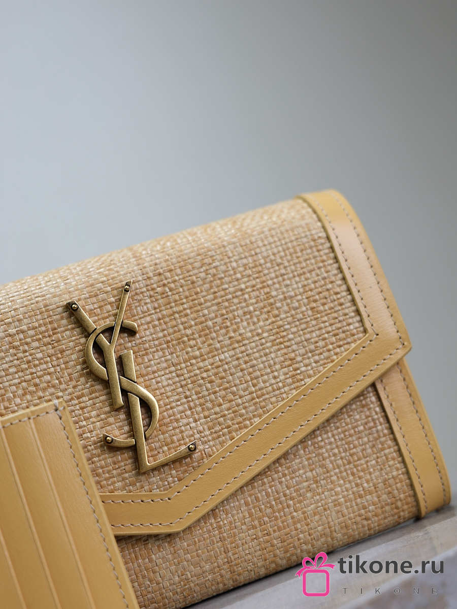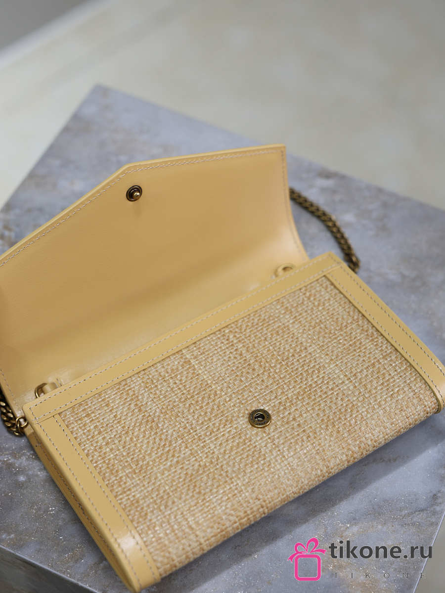 YSL Uptown Chain Wallet In Micro Raffia Natural Hay & Blush - 19x12x3cm