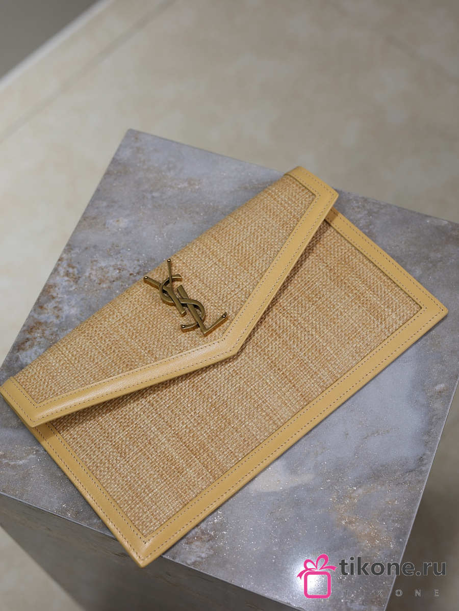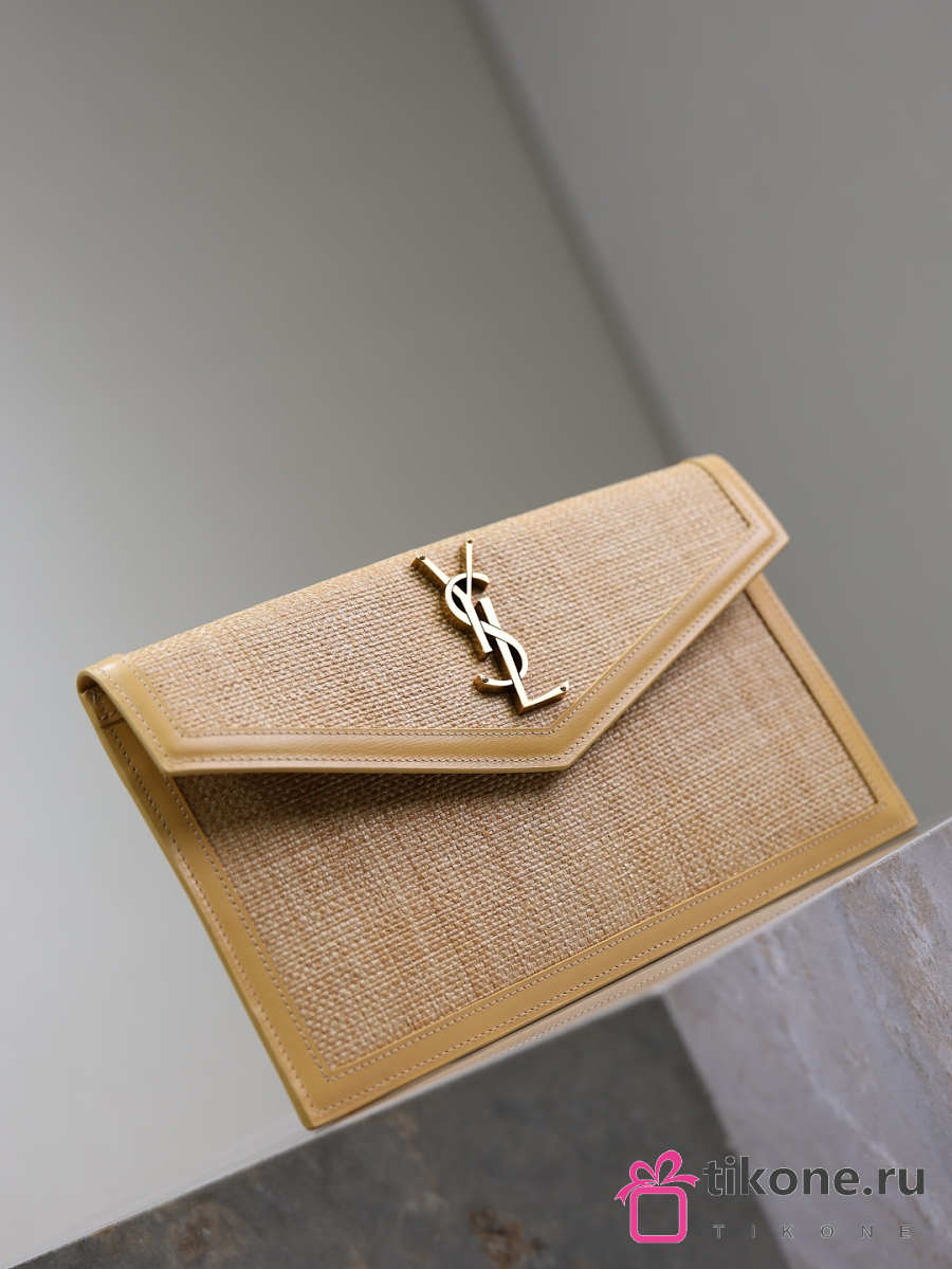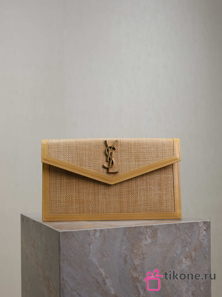 YSL Uptown Pouch In Micro Raffia Natural Hay & Blush - 27x16x2cm
