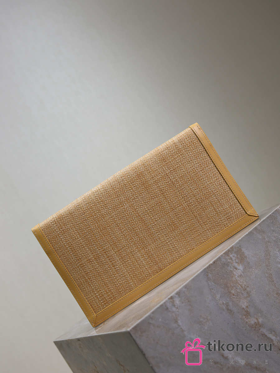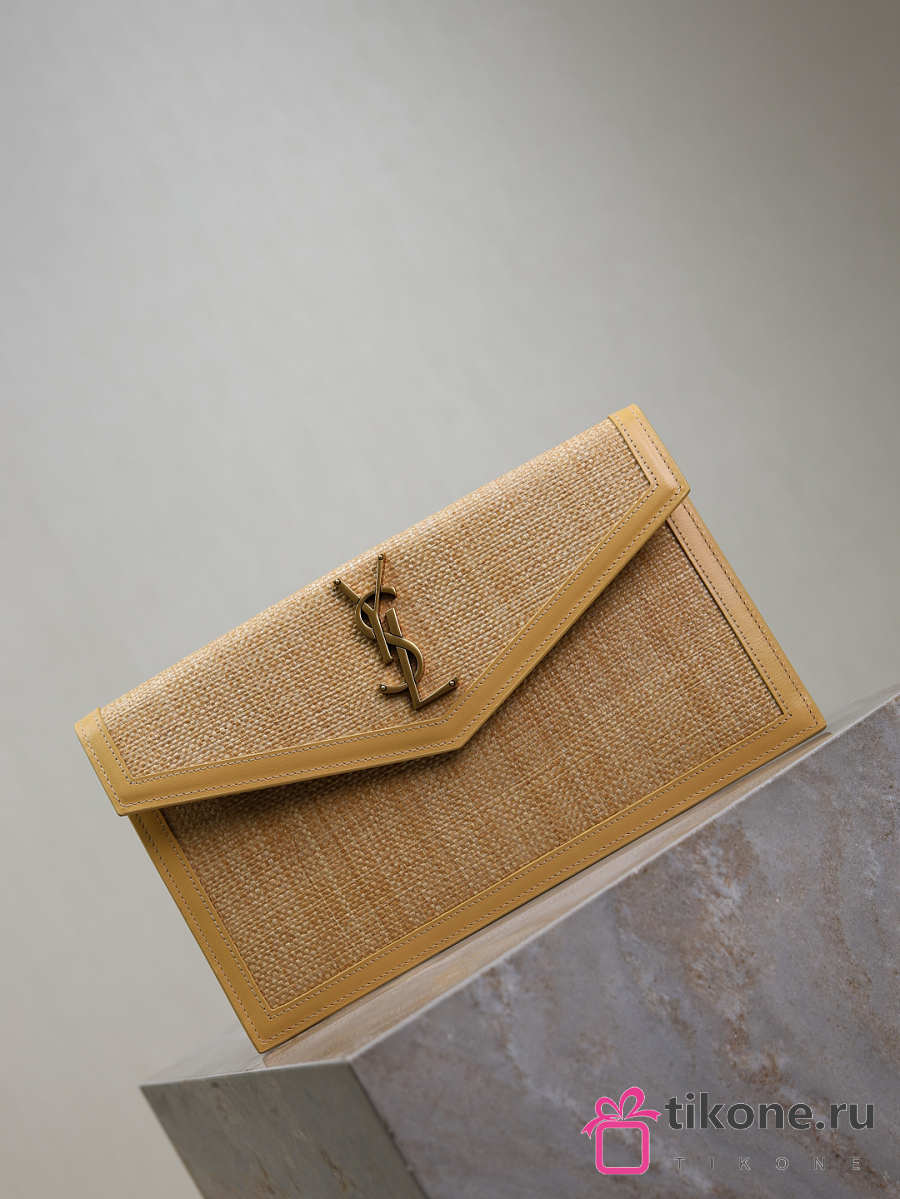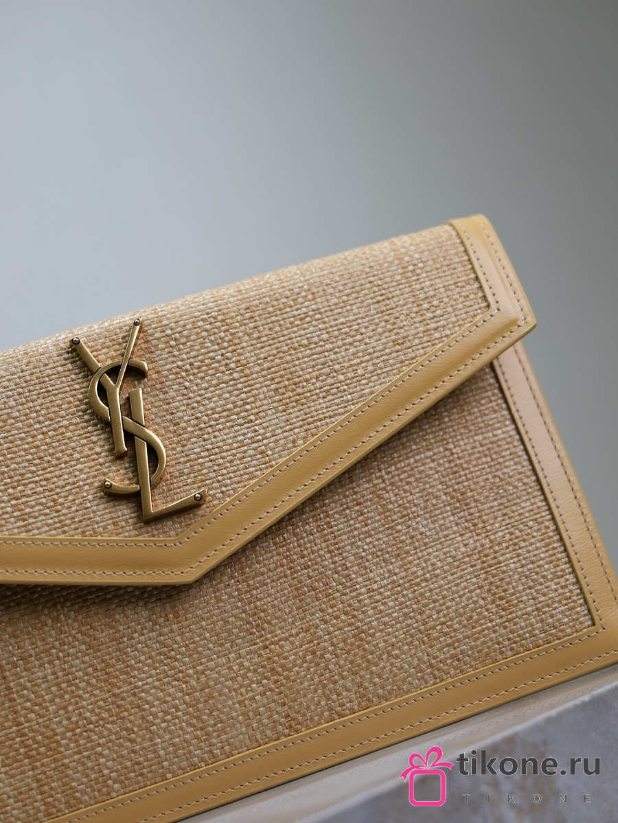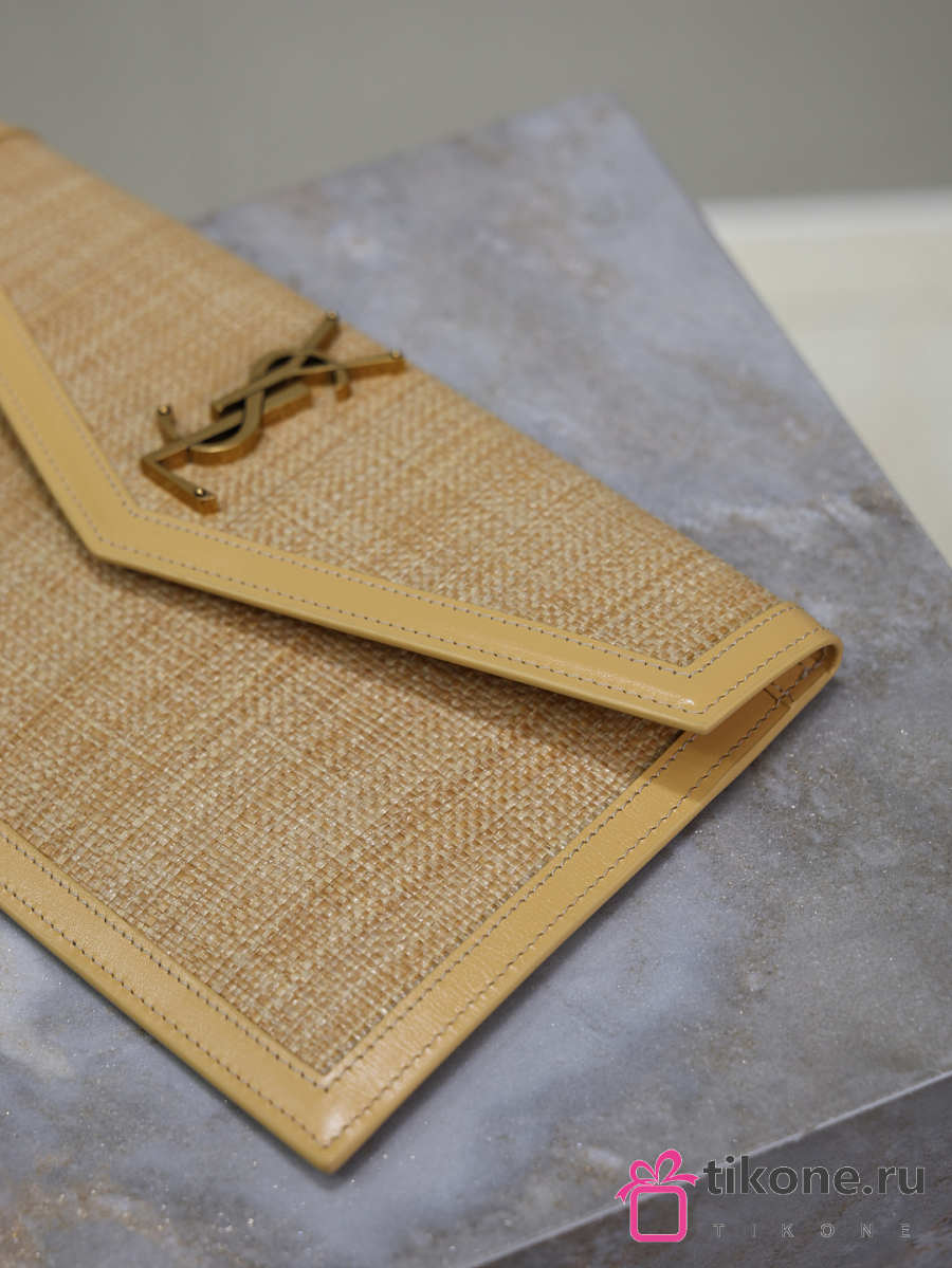 YSL Uptown Pouch In Micro Raffia Natural Hay & Blush - 27x16x2cm