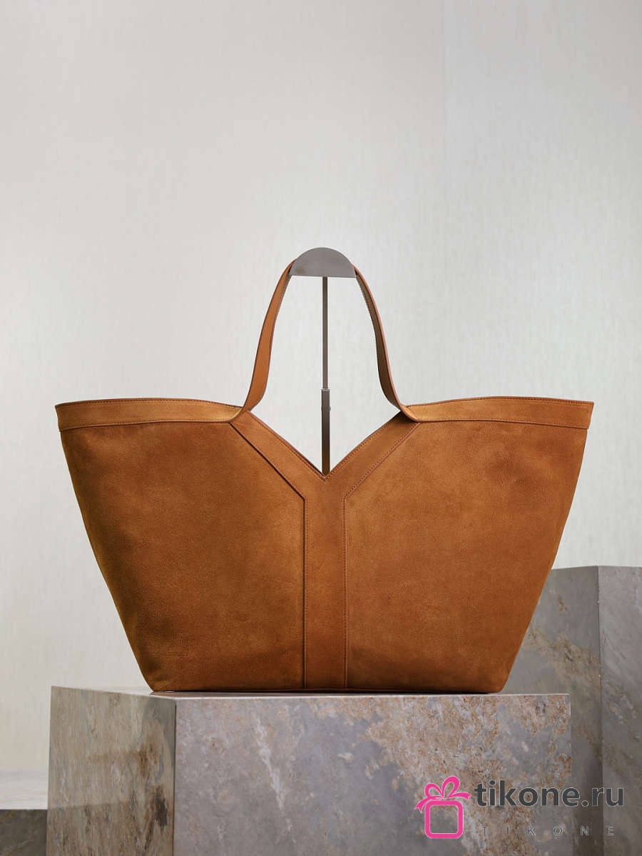 YSL Y Tote In Suede Dark Caramel Cognac - 37x32x27-22cm