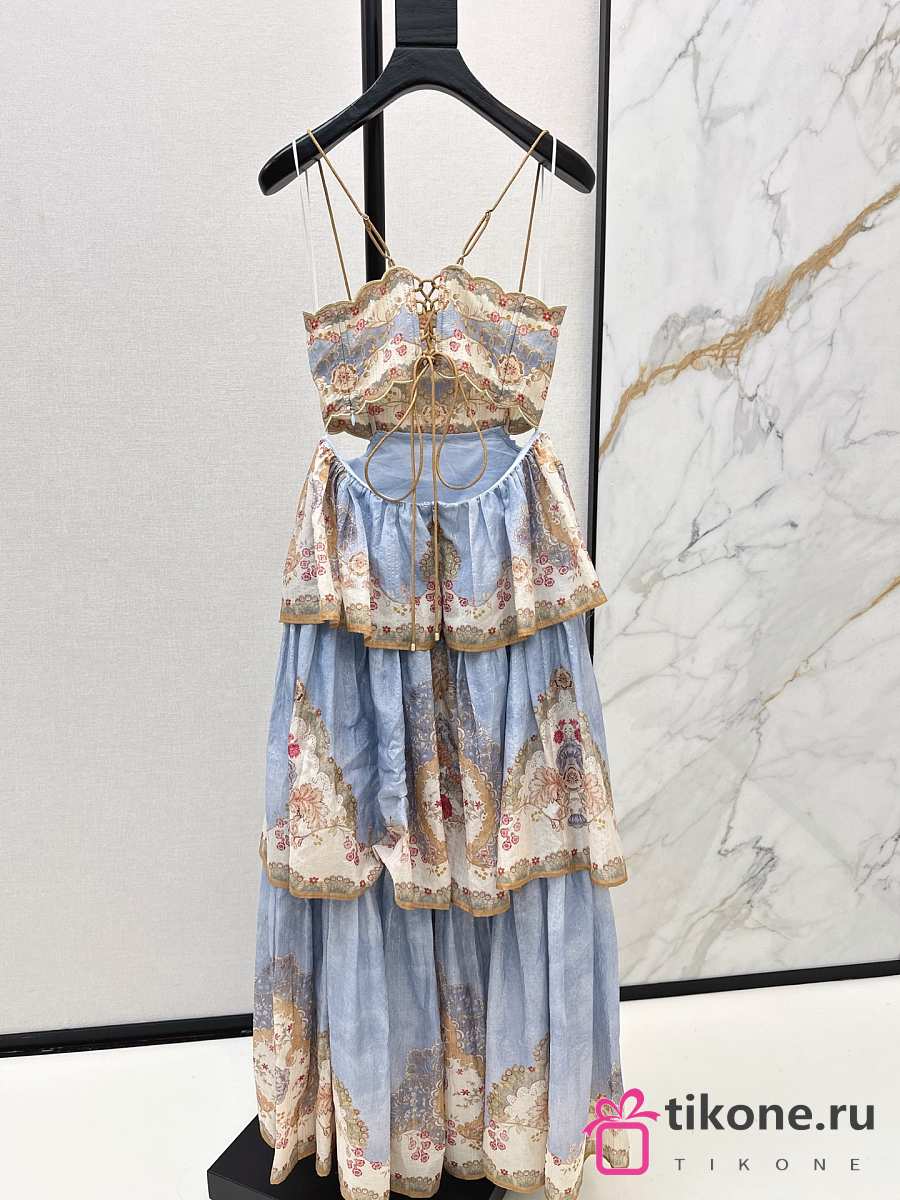 Zimmermann Daylight Tiered Maxi Dress in Wallpaper Floral Denim 5353DRS263