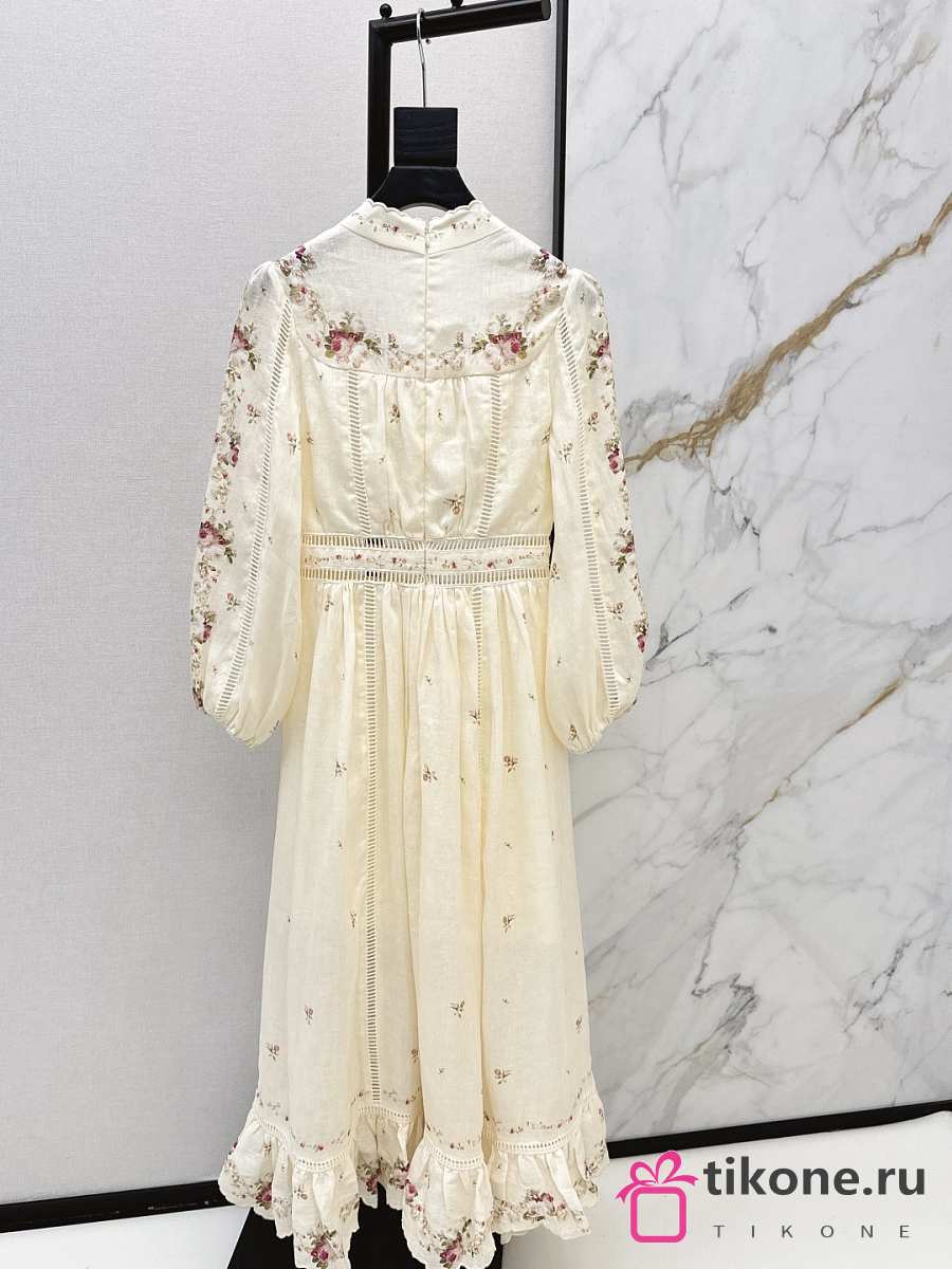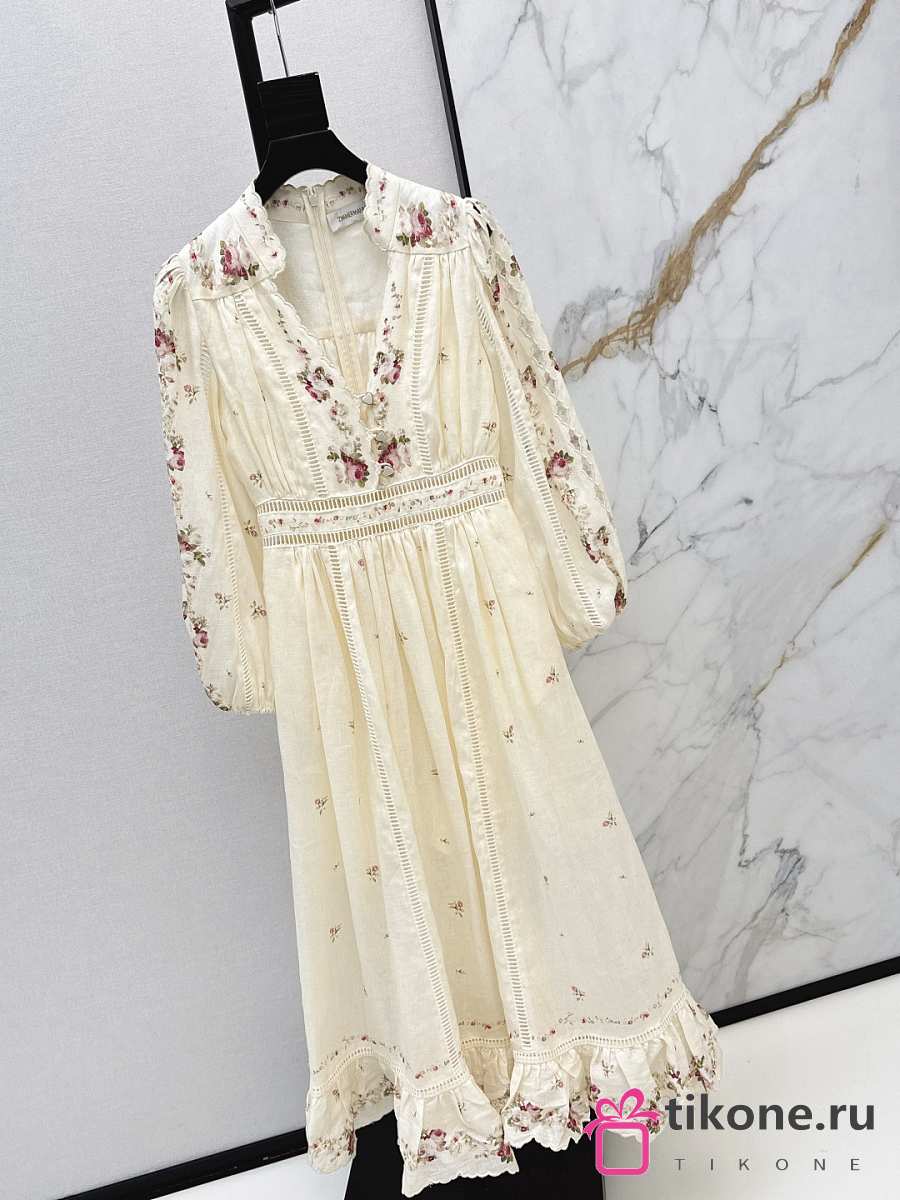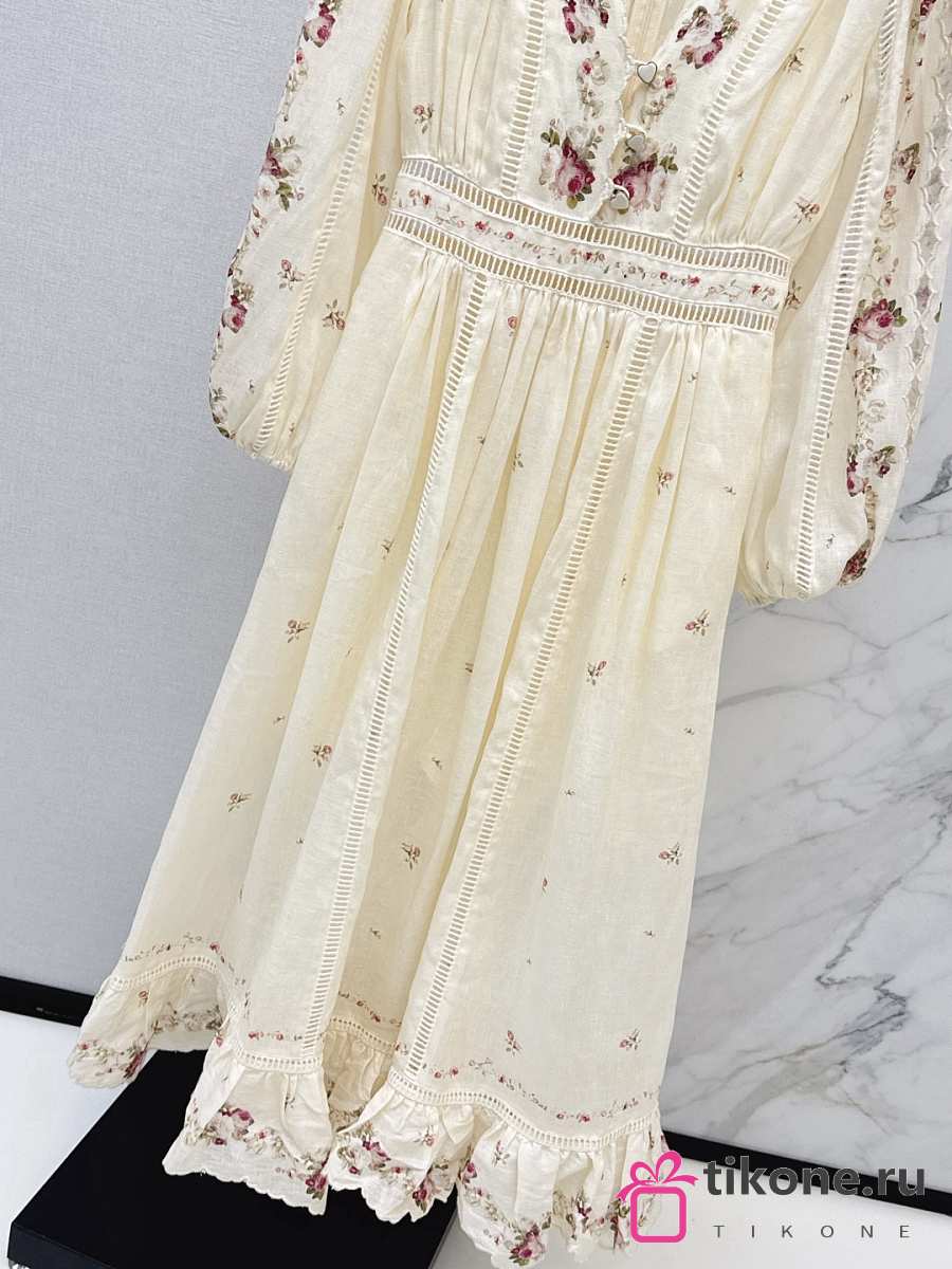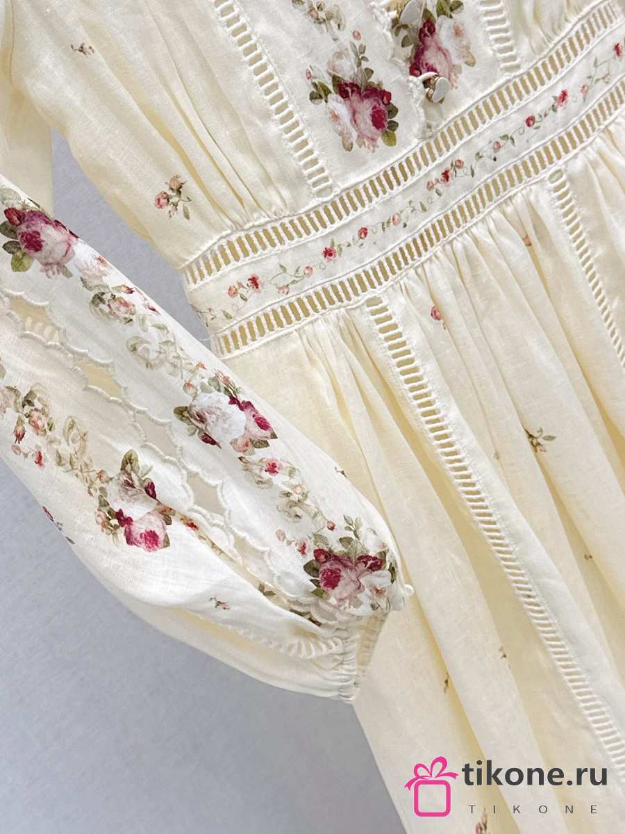 Zimmermann Patience Plunge Midi Dress in Cream/Pink Rose 5372DRS264
