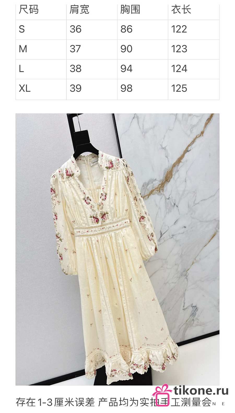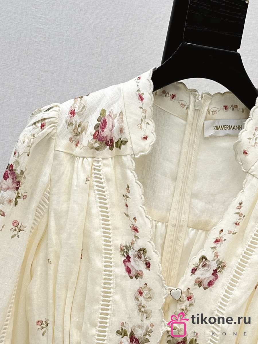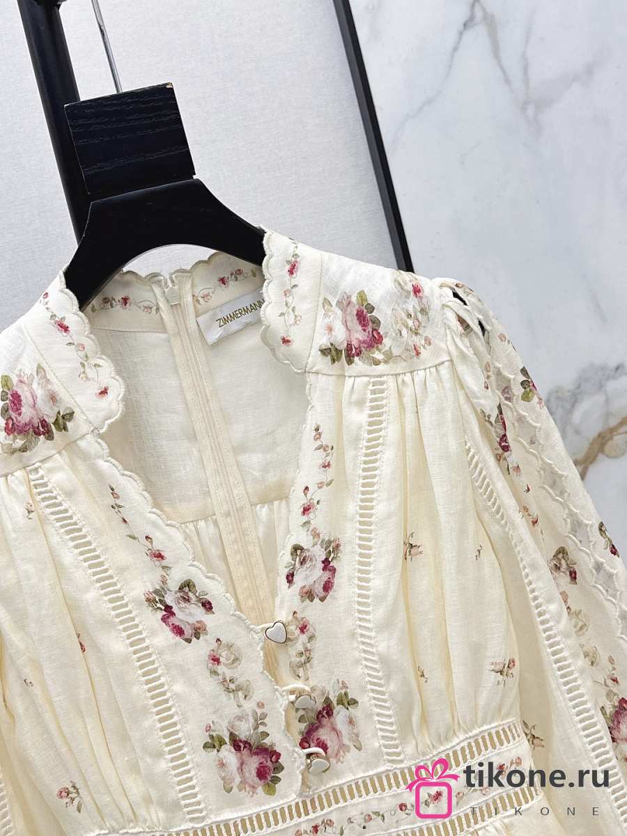 Zimmermann Patience Plunge Midi Dress in Cream/Pink Rose 5372DRS264